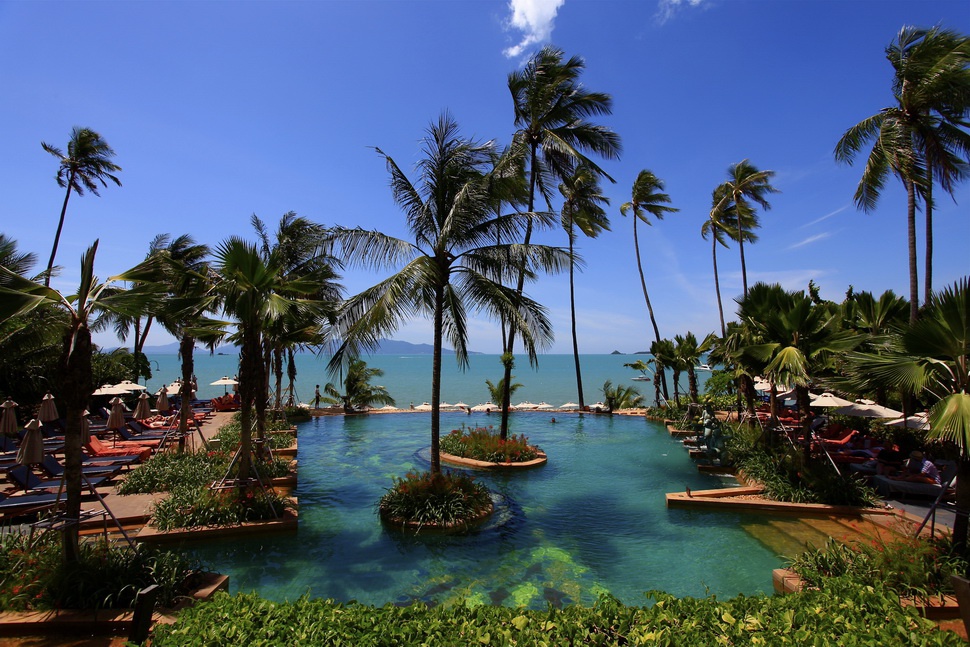 Анантара Бофут Кох Самой Курортний комплекс " Тайська була розміщена в світлих тропічних садах, недалеко від пляжу снігу острова Ко-Самуі, пляжу Бофута, на тихій пляшці бухти Риберман, де спрощуються прозорі води бухти Сеяма. Anantara Bophut Koh Samui Resort "