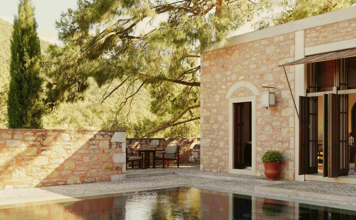 Кожен окремостоячий номер Pool Pavilion Deluxe Sea View розташований на затишному схилі пагорба з видом на Егейське море. До послуг гостей тихий приватний сад і власний басейн площею 24-36 м².