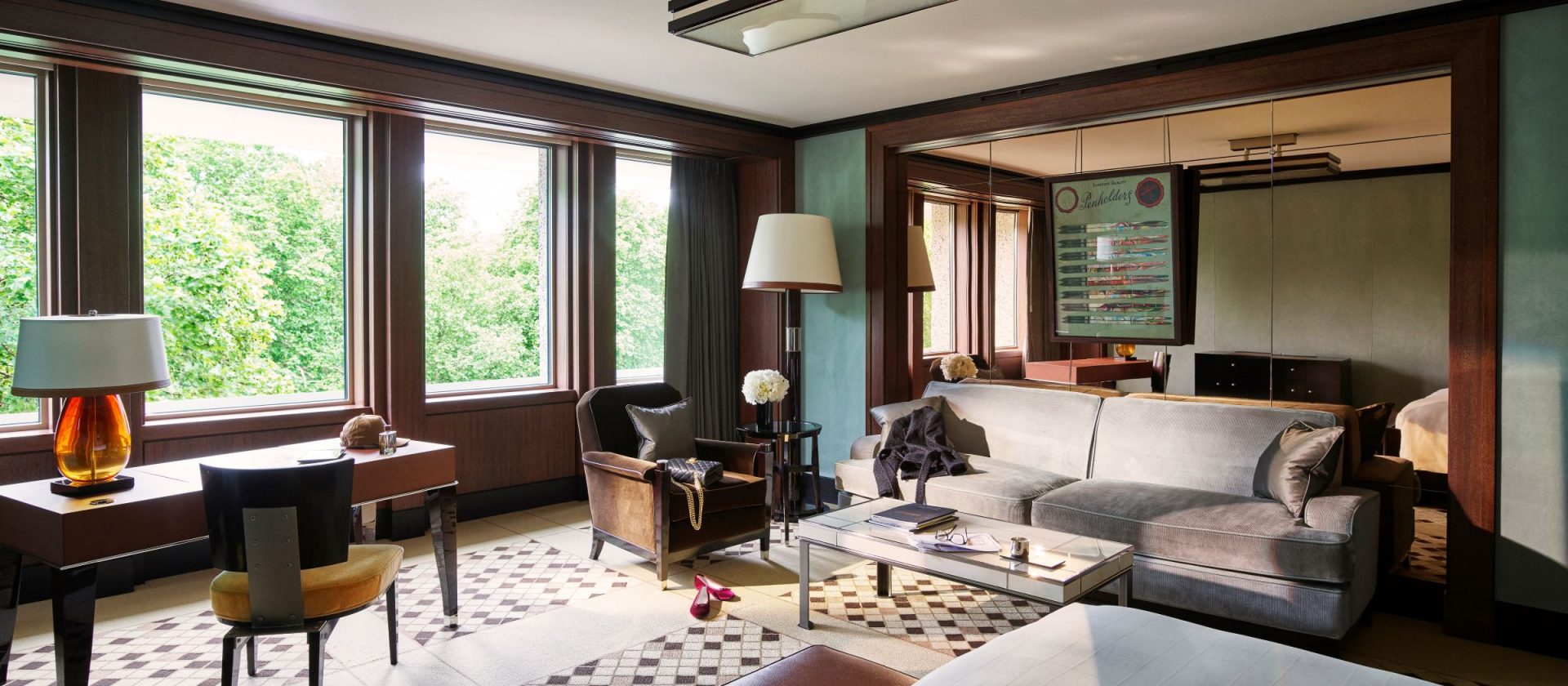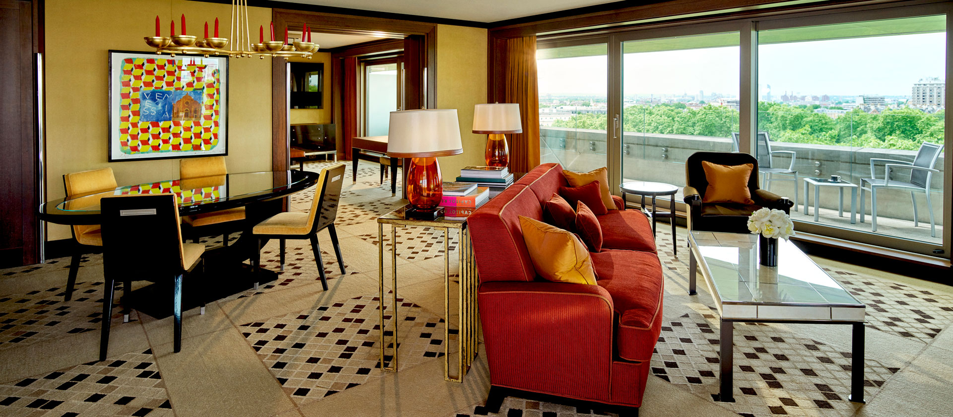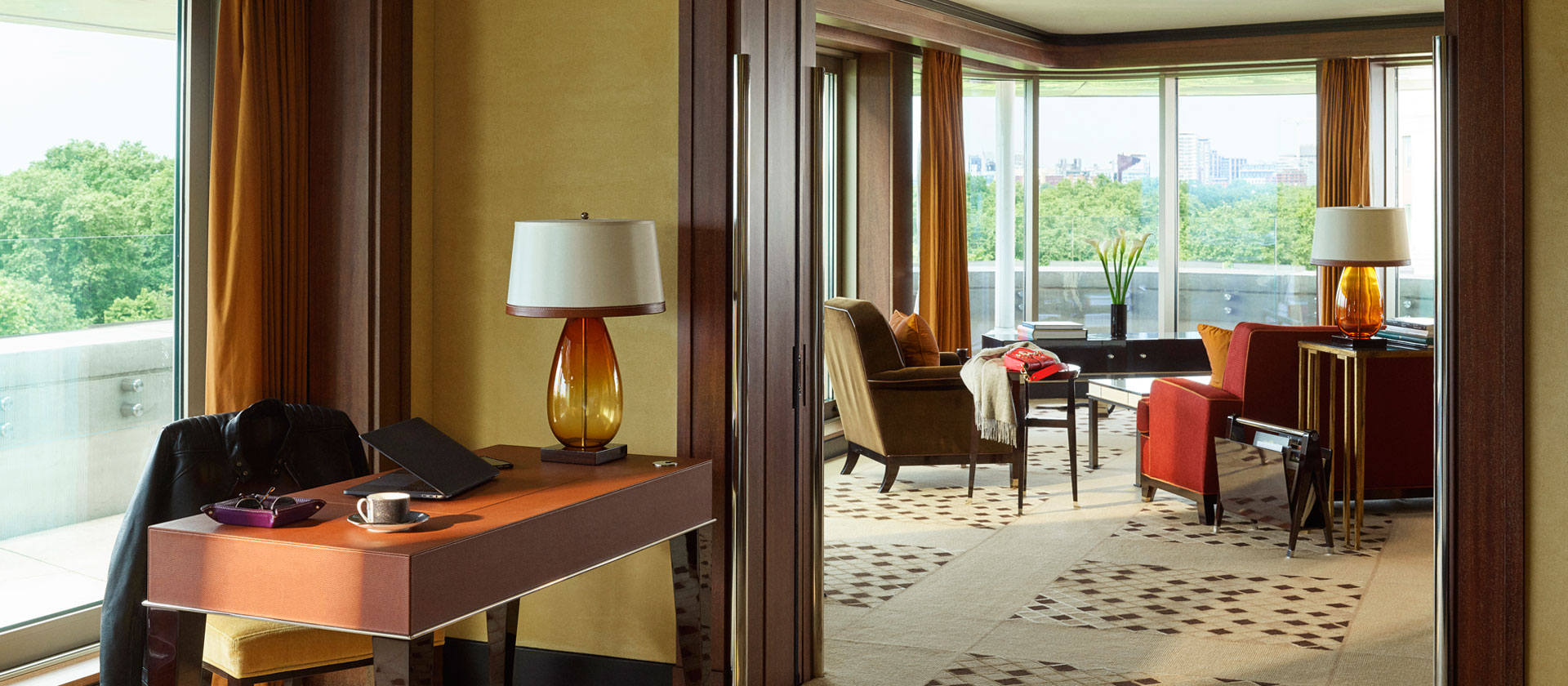 171 кв. м Гостинний люкс з великим видом на парк Hyde складається з трьох затишних спальних місць з двоспальними ліжками з двоспальними ліжками, просту окрему вітальню з робочим столом, зоною депледа і рекреаційним хабаром. Три підлогові санвузли в італійських мармурах мають санвузол, душову кабіну і два раковини. Місце: 6 осіб.