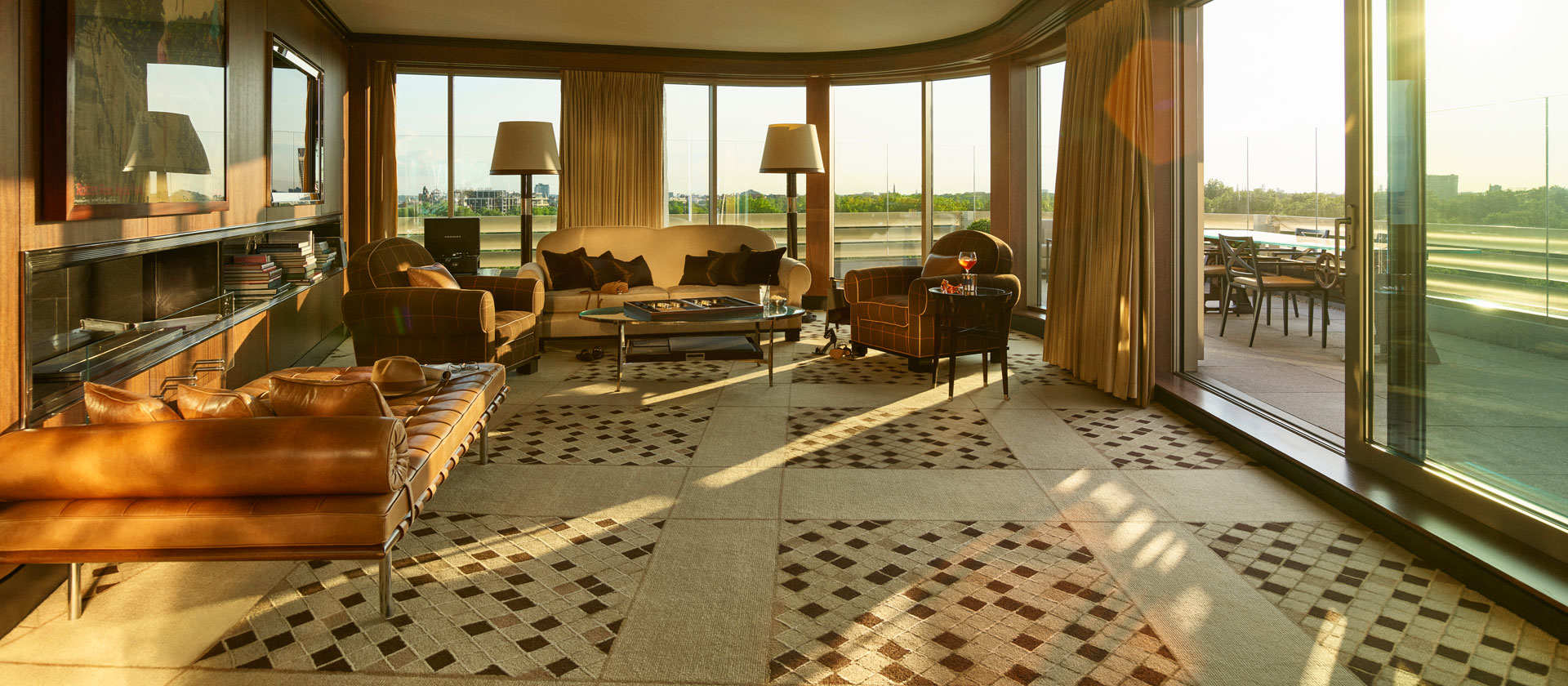 170 кв.м Фіксований номер на 10-му поверсі з окремим входом, персональним ліфтом, розташованим по всьому периметру тераси з зоною відпочинку, обідньою зоною і панорамним видом на Лондон. Номер складається з простої спальні з ліжком king-size, письмовим столом, зоною відпочинку, залом, великим вітальнею з диваном, кріслами і диваном, кав\'ярією і harbor, гостьовим туалетом, ванною кімнатою з підлогою, підігрівом італійського мармуру має ванну, душову кабіну, дві точки зору. Більше в номері, телевізори в вітальні і спальні. Чи може бути додаткова спальня. Місце: 3 чол.