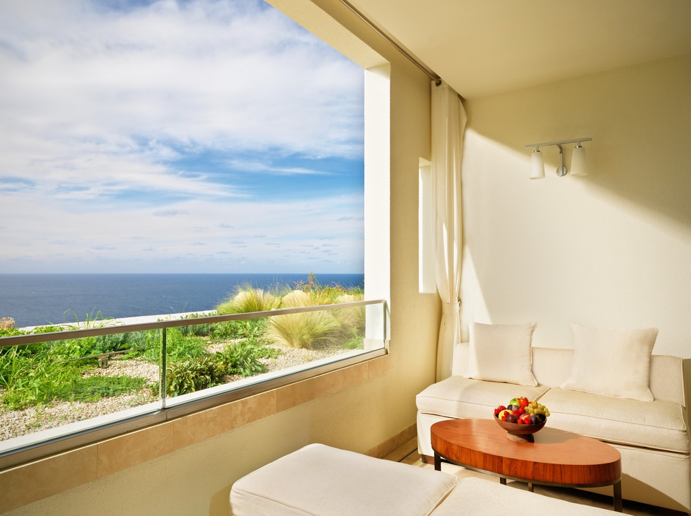 - Приватна тераса з видом на море зі скляним або стінним бар'єром