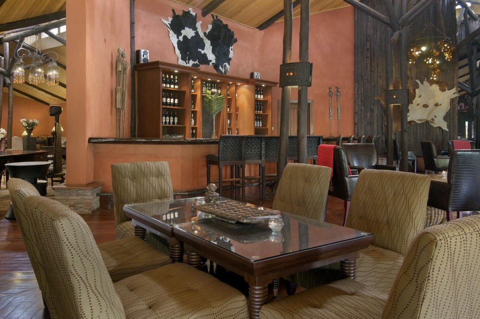 стелі. Увечері простір світиться світлом, що робить його дуже комфортним і комфортним, а можливість дається африканським, європейським і азіатським кухням. На терасі по річці з рестораном, який оселився тут, веде безпосередньо до теплого басейну. Для справжніх гурманів, кожен вечір, вечеря проводиться у відкритому повітрі, що супроводжується поєднанням місцевих фольклорних груп.Лаунж і бар площею 80 місць, розташованих в головному корпусі. Внутрішній декор представлений в традиційному африканському стилі, простір прикрашений тканинами африканськими фунтами і ручними мазеями. Веранда, прилягає до місця відпочинку, має відмінні види на річці Мара. Кожна ніч, камін, де представлені традиційні танці, слайди або інтерв'ю. Басейн бар знаходиться в тіні дерев. Ідеальне місце для обіду та барбекю.