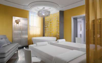 35-40 кв. м. Шикарний номер з інтер'єром у класичному стилі має ліжко розміру «king-size» з балдахіном, диваном, трьома столами: журнальним, письмовим та елегантним туалетним столиком, кріслами та софою, ванну кімнату з італійського мармуру з ванною, подвійною раковиною. Доступно бронювання додаткового спального місця та дитячого ліжка. Максимальне розміщення – 2 особи.