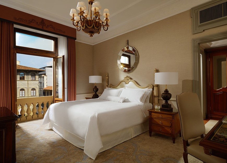 У серці італійської «колиски Відродження» – Флоренції, у старовинному палаці XV століття, що раніше належав знатній родині Джунтіні, розмістився один із найкращих готелів Європи – розкішний St. Regis Florence. До кінця 18 століття в період загальноміського архітектурного оновлення міста палац був перетворений на готель під назвою Гранд Готель Роял де ла Пе. З 1982 року історичний центр Флоренції входить до списку Всесвітньої спадщини ЮНЕСКО, готель є невід'ємною частиною великого міста – його «квітучого» минулого, а саме так перекладається слово Флоренція та інтегрованої в сучасність інфраструктурної досконалості та сервісу. Поглядам гостей, що зупинилися в готелі, будуть представлені чудові фрески ручної роботи, блискучі кришталеві люстри, дзеркала в золочених рамах, справжні витвори мистецтва, старовинні полотна, які прикрашають всі приміщення готелю, включаючи чудові номери та сьюти. Також готель має в своєму розпорядженні СПА Iridium Suites by Clarins, сучасний фітнес-центр, ресторан тосканської кухні, бар, винний погреб з багатою колекцією вин, зали для ділових і урочистих зустрічей, а також інші послуги найвищого рівня.