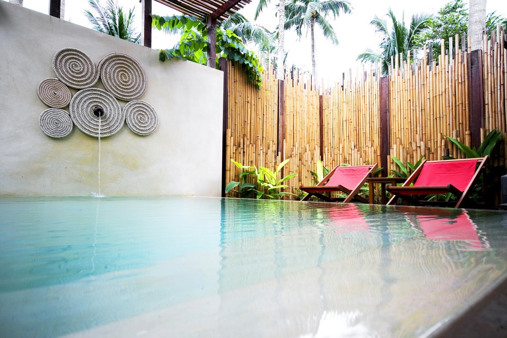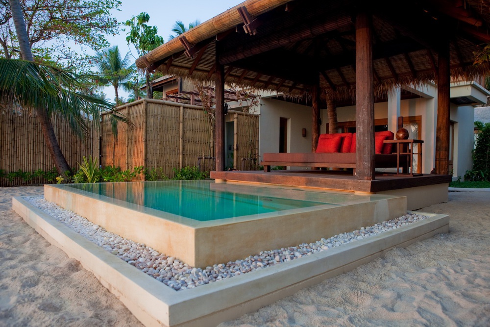 Океанський сад басейн Люкс: 200 кв.м. На пляжі складається з спальні з двоспальним ліжком і зоною відпочинку, санвузлом з душовою кабіною, садом, пляжем з басейном і ліжком для денного відпочинку.