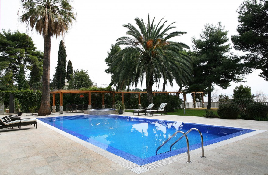 У цю зовнішню частину ідеально вписався великий зовнішній басейн розміром 12 м x 6 м з джакузі в оточенні шезлонгів для зручного відпочинку під променями південного сонця. Саме в цій частині малої середземноморської оази ви, безсумнівно, насолодитеся таким бажаним і репрезентованим у мріях відпочинком від метушливого ритму життя і щоденних турбот.