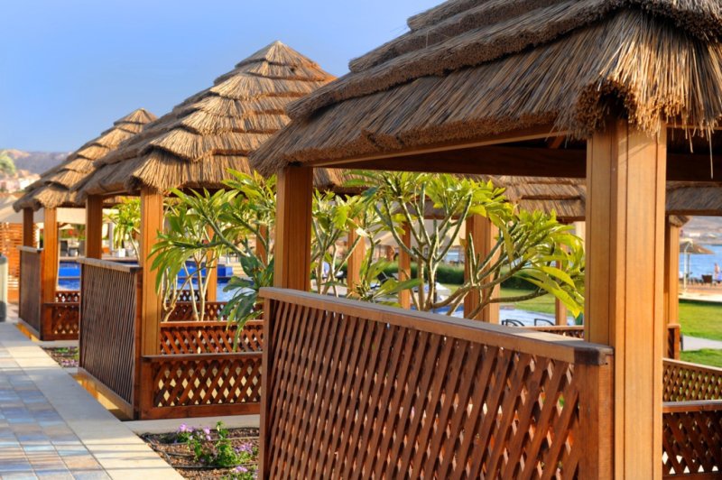Будівля готелю нагадує вілли в східному стилі з напівкруглими арками і вежами. Номери в яскравих піщаних тонах, а також видах моря і пляжу відкриті з вікон.