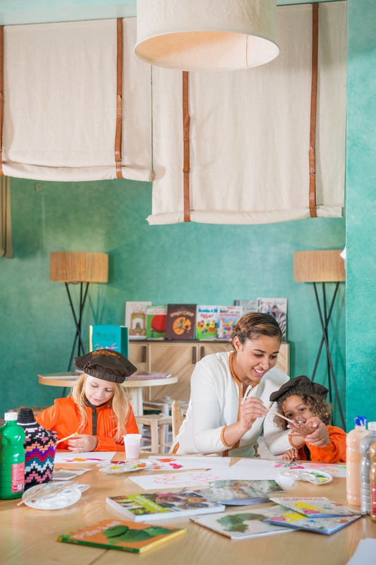 Сімейний Люкс: 124 кв.м1 часй Впроваджено в теплі нейтральні тони, складається з 2 спальні (з двоспальним ліжком і зоною відпочинку і двома односпальними ліжками), гавань, 2 санвузли і 2 тераси з видом на гольф і гори. Ідеально підходить для сімейного відпочинку.