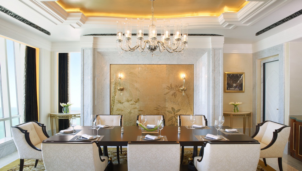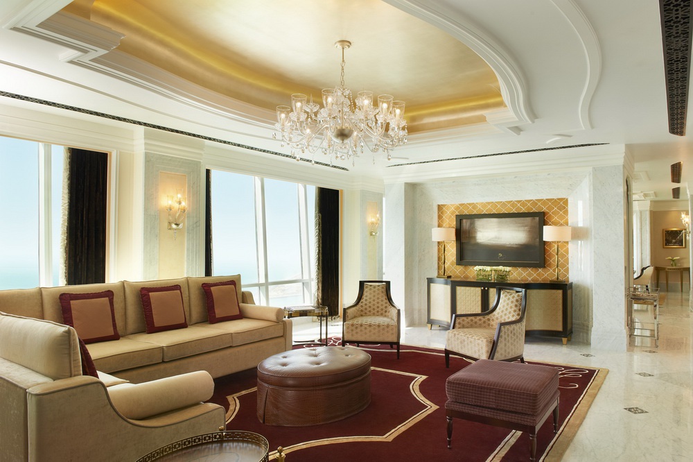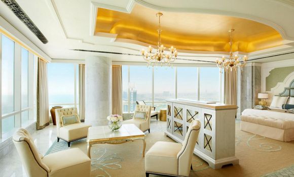1085 кв. м, двоповерховий номер. Окремий ліфт із холу. Розташований усередині мосту між вежами на 48 та 49 поверсі. Панорамний вид на затоку.