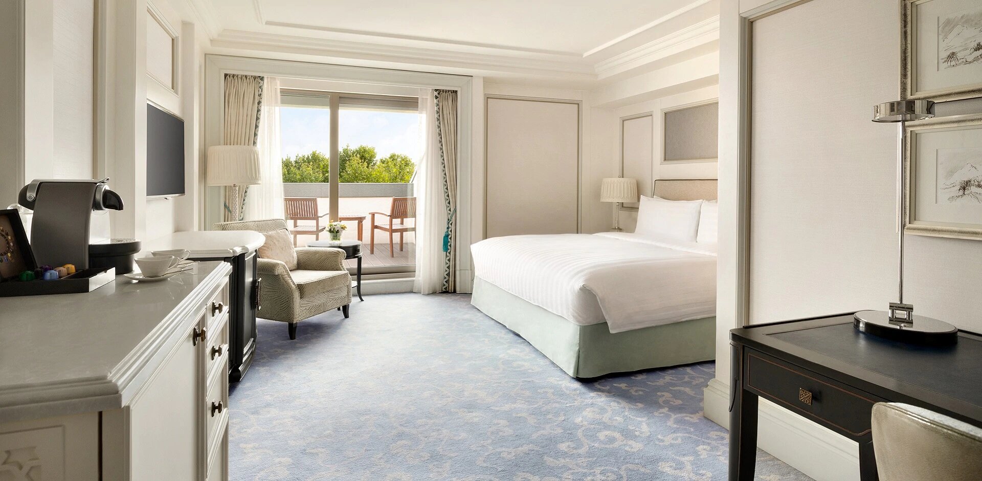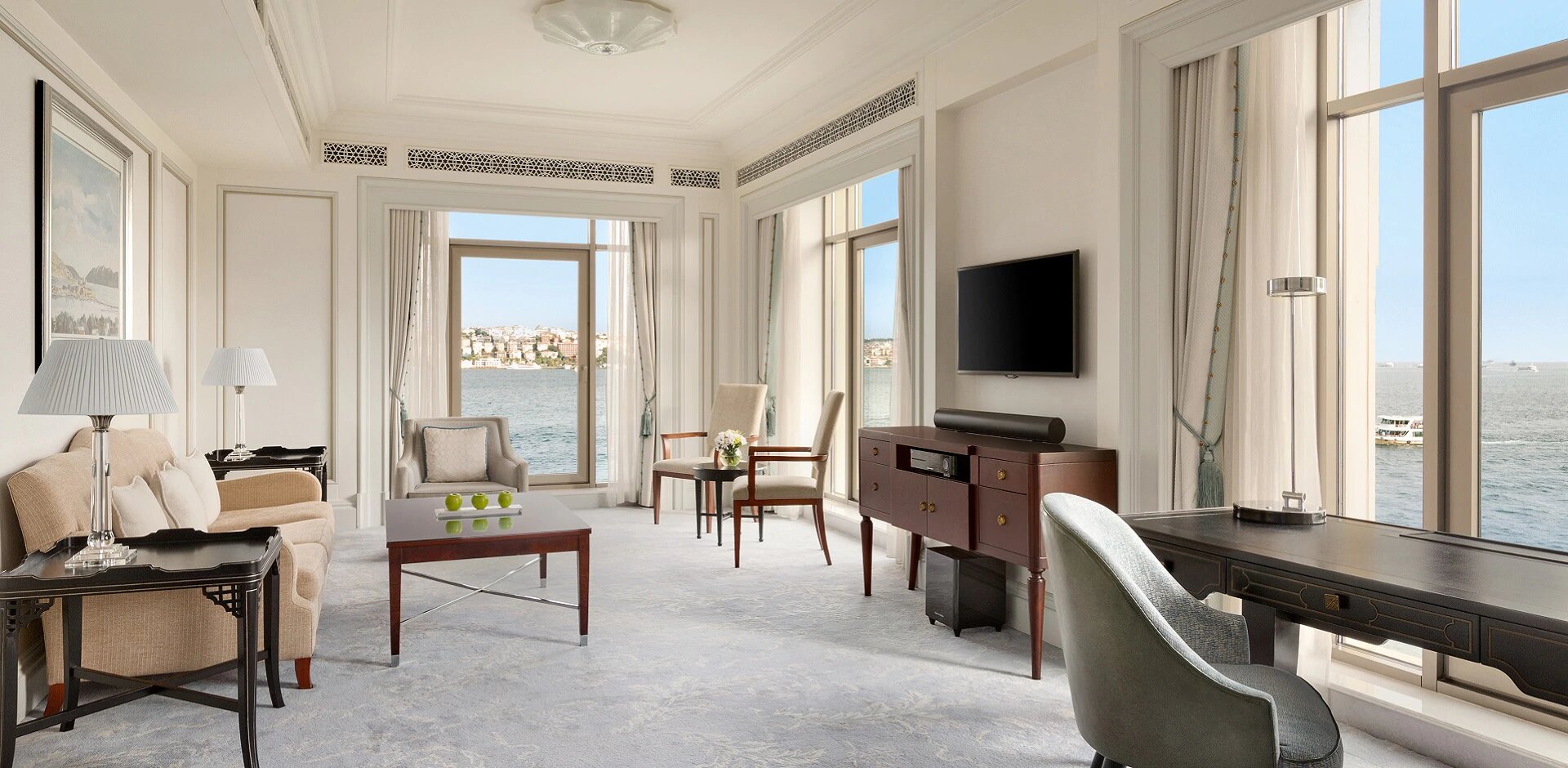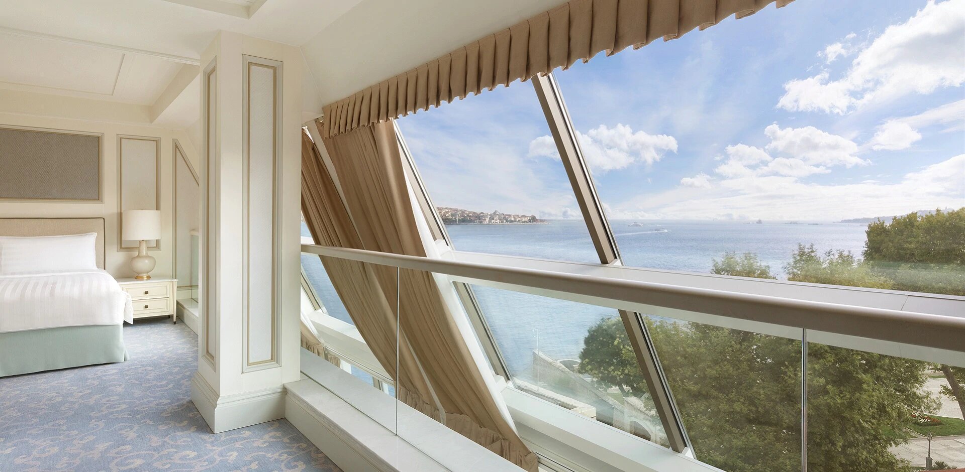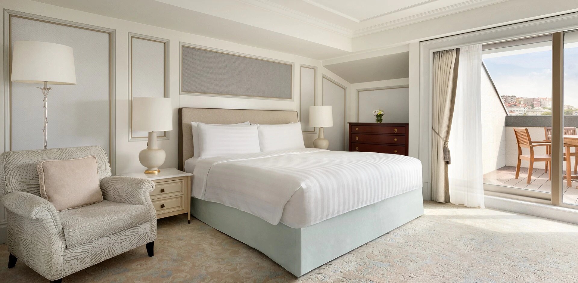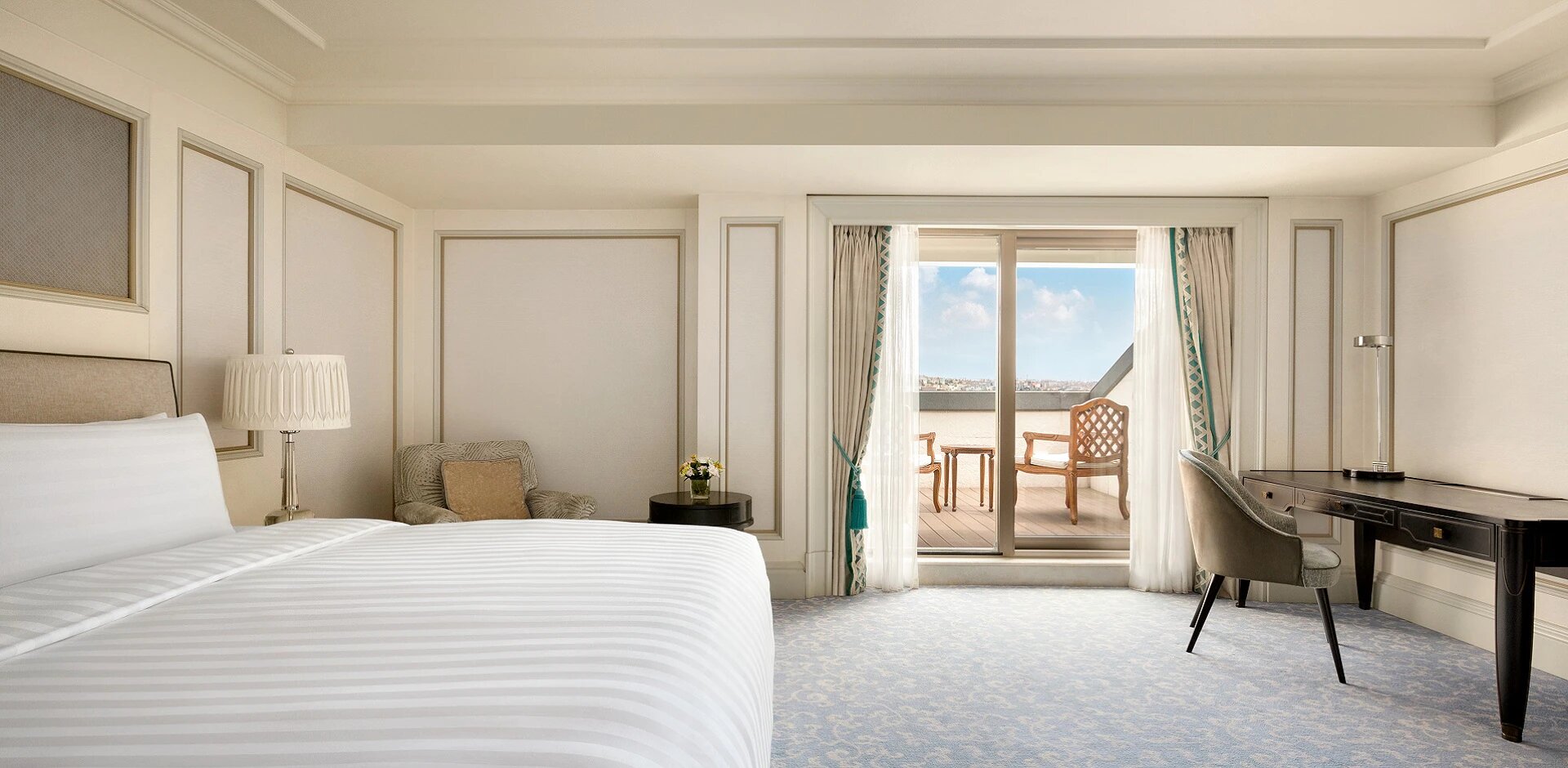 42-60 кв.м. Розташований на 5 поверсі, складається зі спальні з ліжком king-size або двома ліжками twin, із зоною відпочинку та робочим столом, великої оздобленої мармуром ванної кімнати з окремим тропічним душем та ванною, вбудованим у дзеркало телевізором та підлогою з підігрівом, приватною терасою з видом на Босфор.