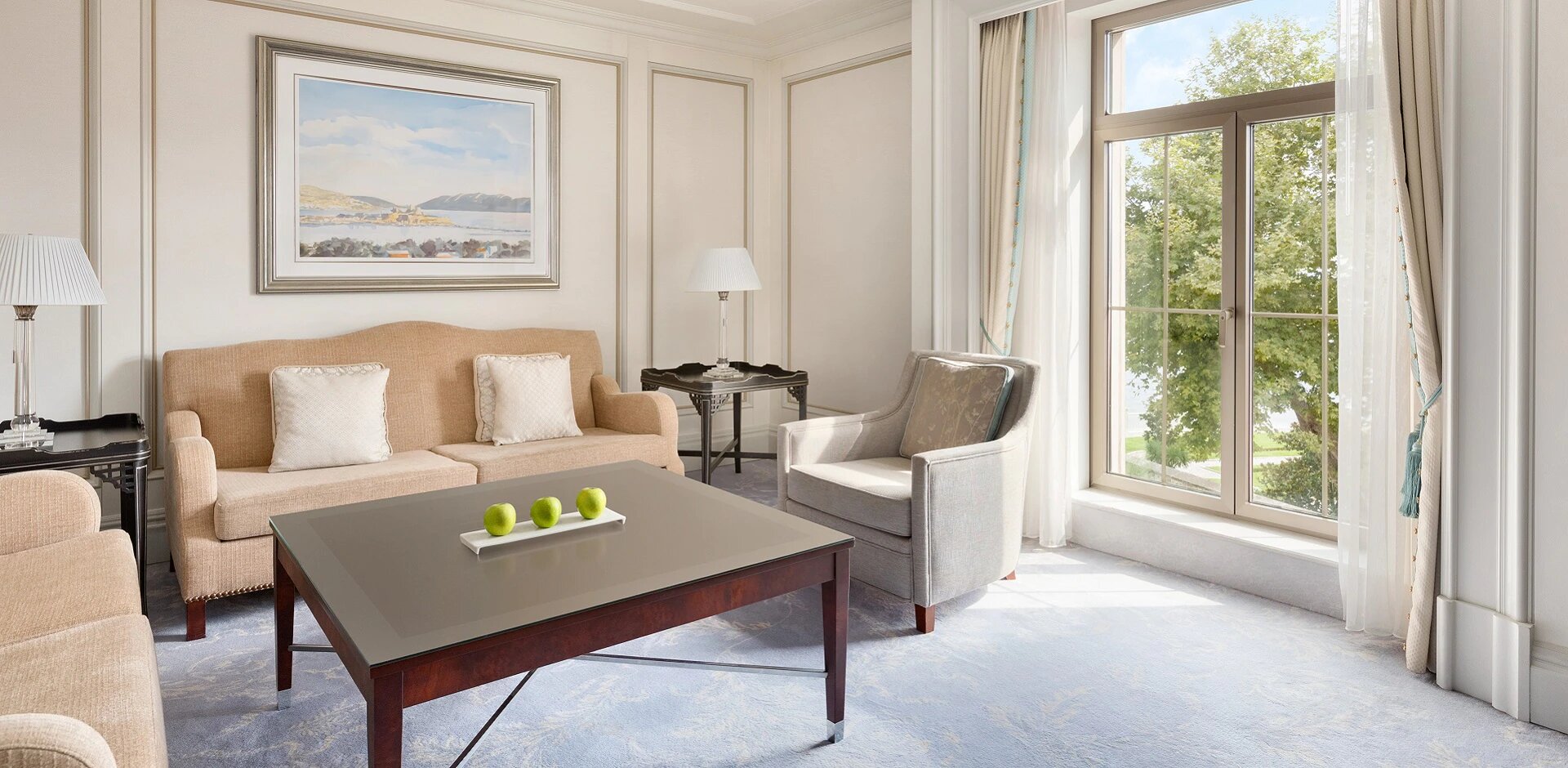 180 кв.м. Фешенебельний номер, розташований на 6 поверсі, прикрашений східним живописом та витонченими витворами мистецтва, складається зі спальні, вітальні, обідньої зони, ванної кімнати з ванною та окремим душем, гостьової ванної кімнати, двох мебльованих балконів: один з видом на місто, інший – на протоку Босфор.