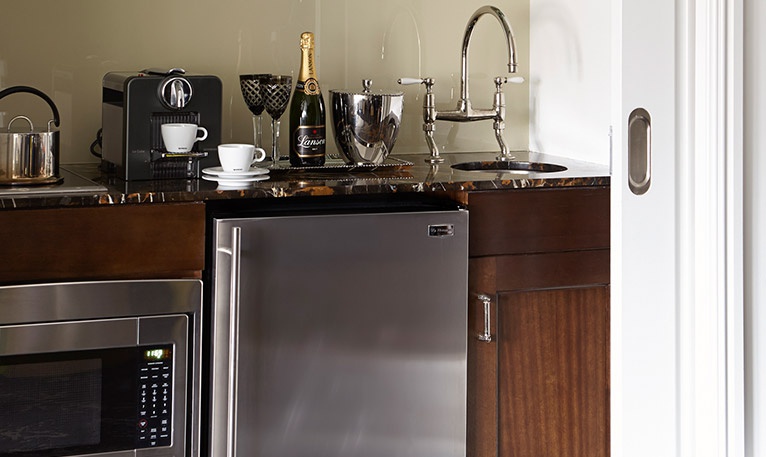 Полулюкс: 61 кв.м1 часй У готелі є спальня з ліжком kingsize, вітальня, кухня з підігрівом з мікрохвильовою піччю, плитою, холодильником і еспресо кавовою машиною, санвузлом з ванною і душем.