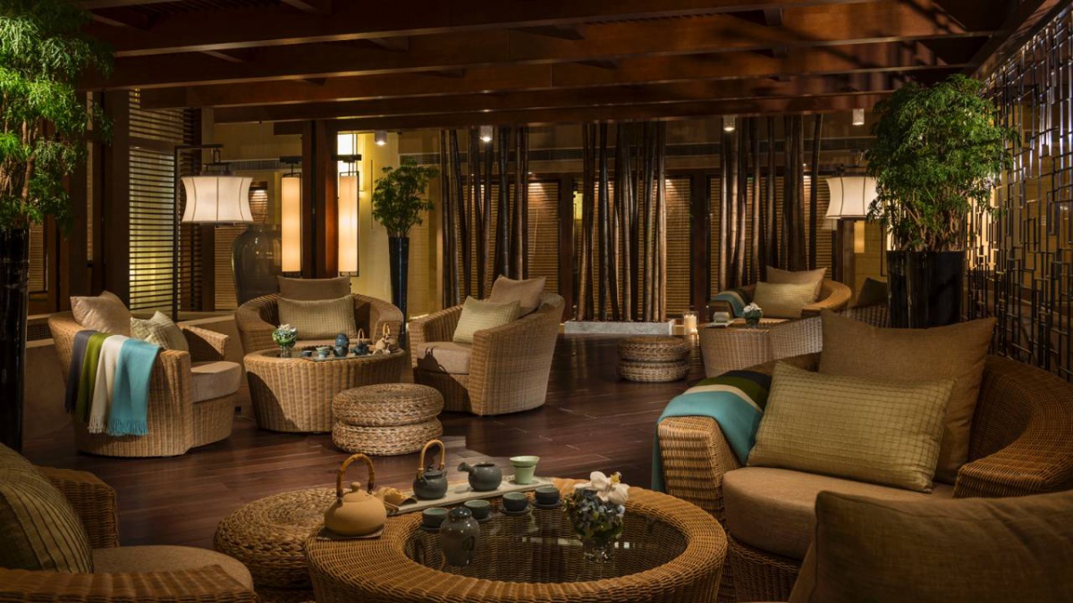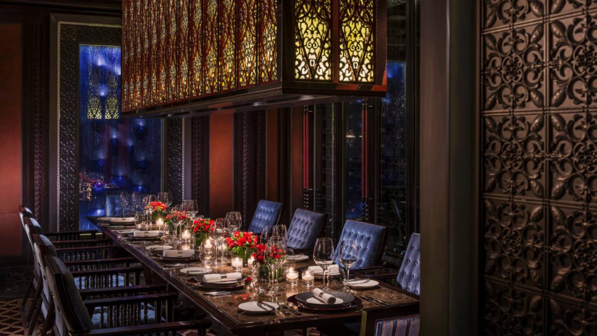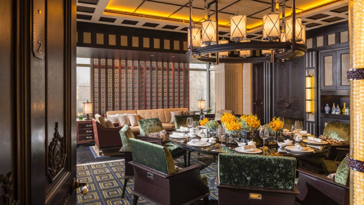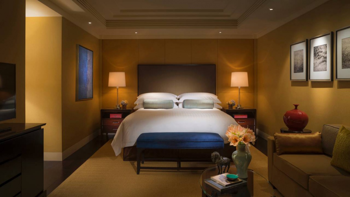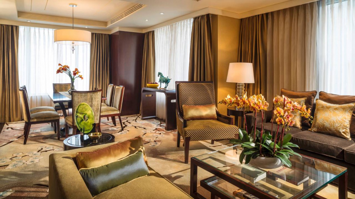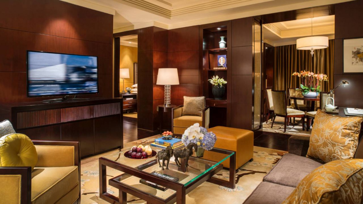 Полулюкс (730 кв. м): відкритий і виснажений відкритий (10 відсотків) лаунж, їдальня з 10 відсотків, кухня зона, кінозал, номер, номер три спальні (два з king-size, один з двома окремими душовими кабінами), 27 поверх. Вид міста та парку Чаоян.