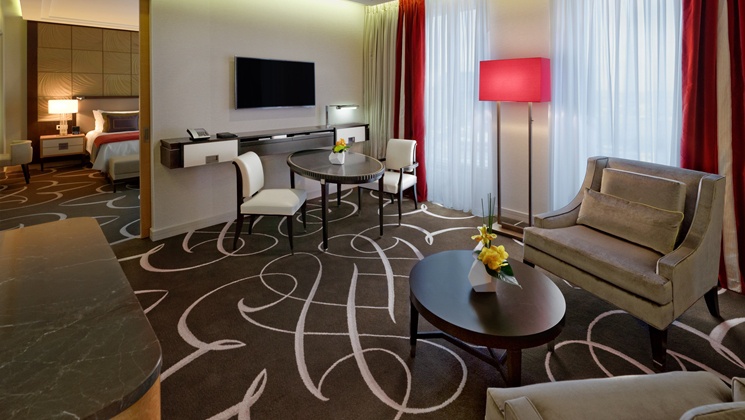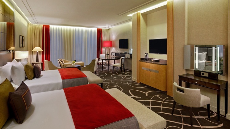Полулюкс King Grand Tower: - 85 м1 часй Номер з панорамними вікнами і захоплюючим панорамним видом на Берлін знаходиться на верхніх поверхах готелю, від 24 до 26 поверхів, а також обладнаний приватним ліфтом. З спальні з двоспальним ліжком з спальним місцем, 6-місний номер з повністю обладнаним міні-кухні, мармуровою ванною кімнатою, душовою кабіною і підігрівом підлоги.
