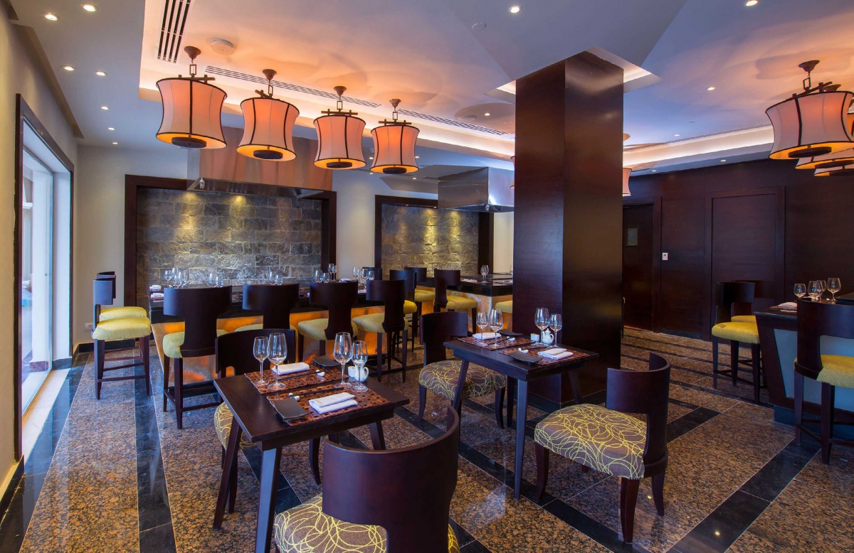У готелі є різні ресторани та бари, в тому числі 7 меню-серверів. Гостям пропонують відпочити з єгипетським, італійським, мексиканським і азіатським фугеном, замовити барбекю, морепродукти, суші і страви teppanyaki. У готелі є шість барів.