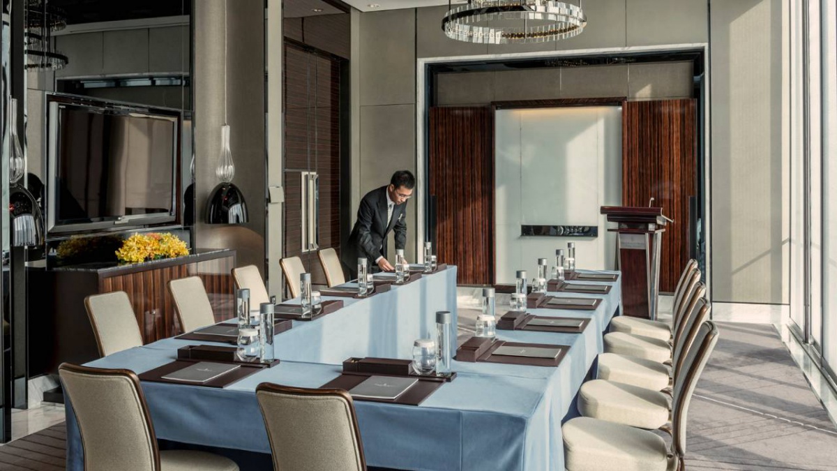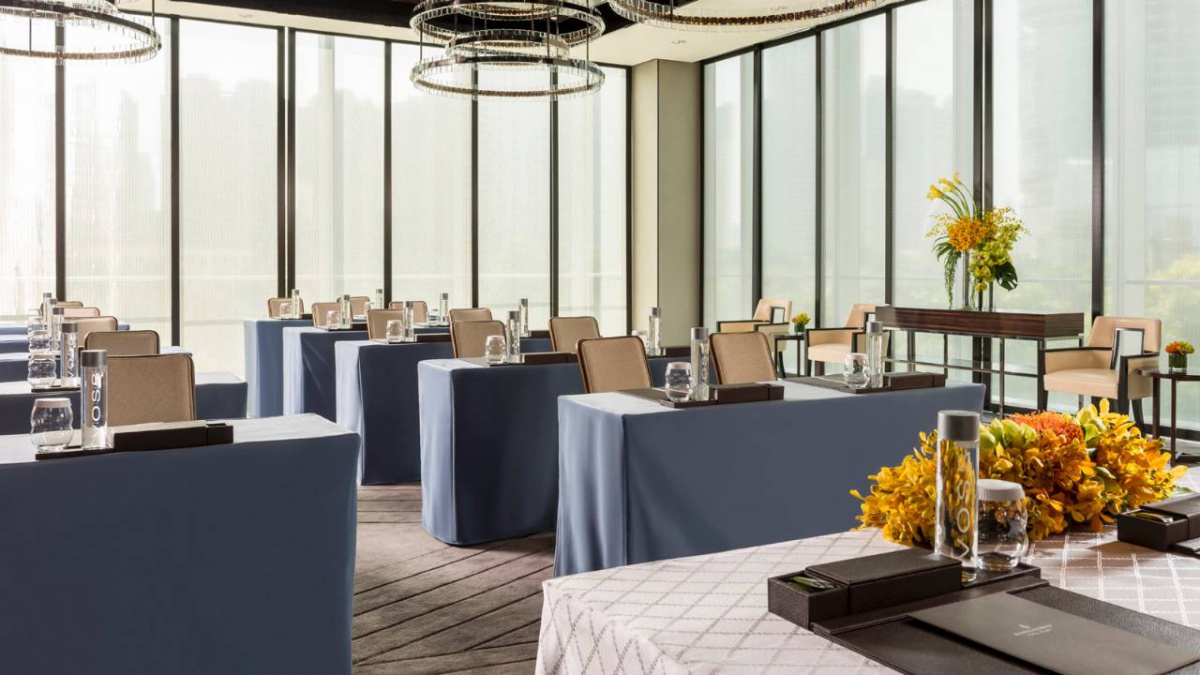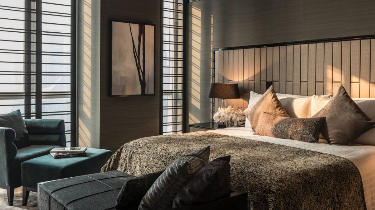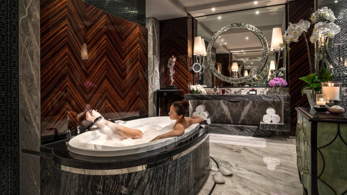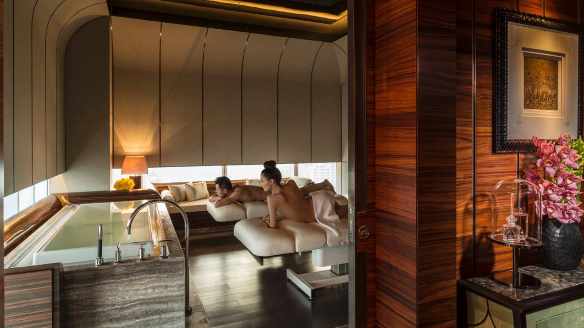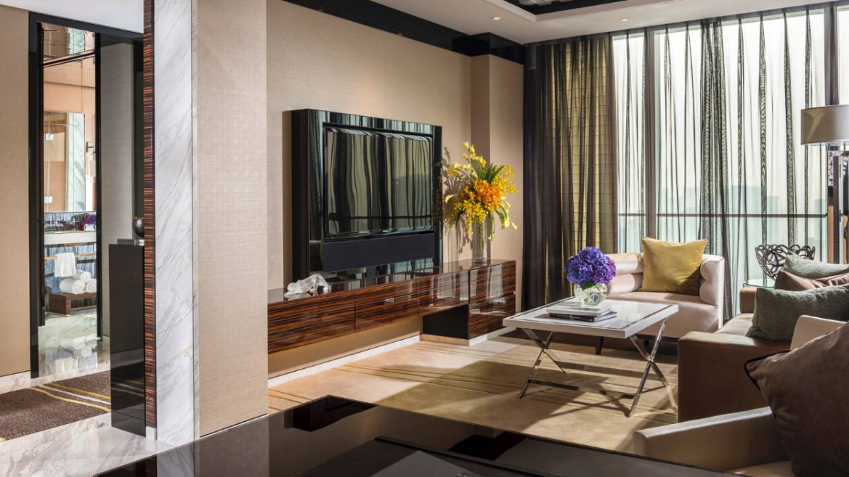 Президентський люкс (432 кв. м): гостьовий номер, обідній стіл на 8 с., офіс, номер для зберігання, 2 спальні (одне з двоспальним ліжком, інше з двома двоспальними ліжками), 2 шафи, 2 санвузли (один з ванною та душовою кабіною) і гостьовий номер. На 39 поверсі. Панорамний вид на місто, Бульвар, Перлинна вежа. Чи може бути додаткова спальня з ванною кімнатою.