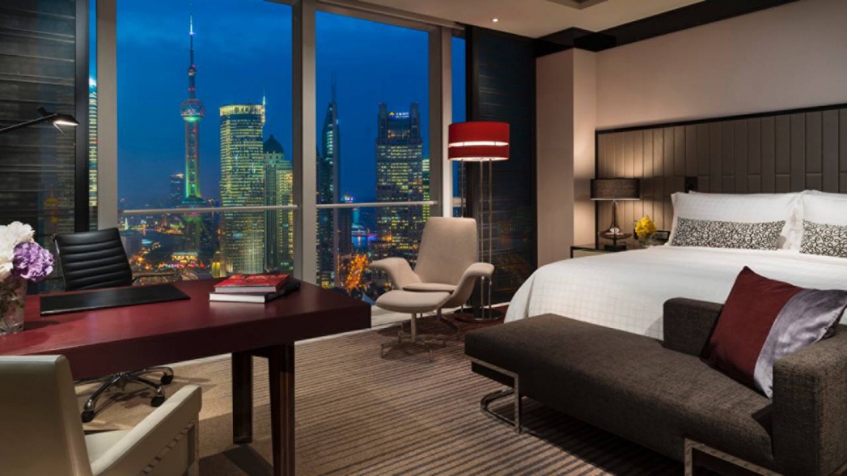 Полулюкс (73 кв. м): спальня з вітальною зоною (бл. king-size), шафа, ванна кімната з ванною та душовою кабіною. Від 30 до 39 поверхів. Вид на місто, берегова лінія Bund, бульвар Бульвара, вежа з видом на океан.