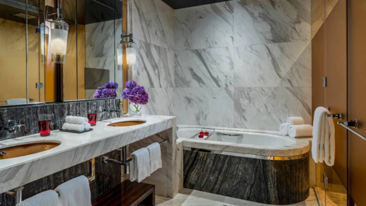Полулюкс (73 квадратних метрів): спальня з двоспальним ліжком, ванна кімната з душовою кабіною. Від 30 до 39 поверхів. Перлинна вежа і місто.