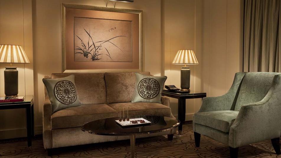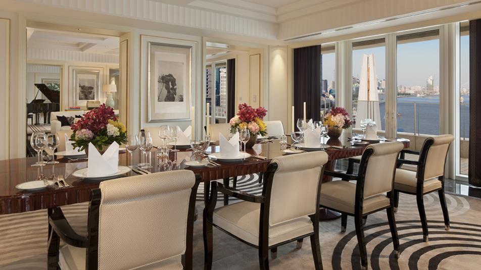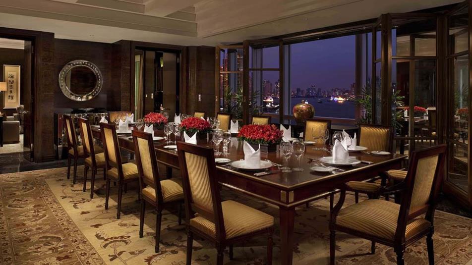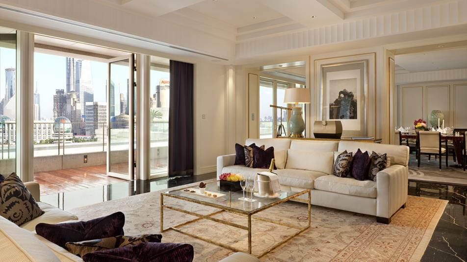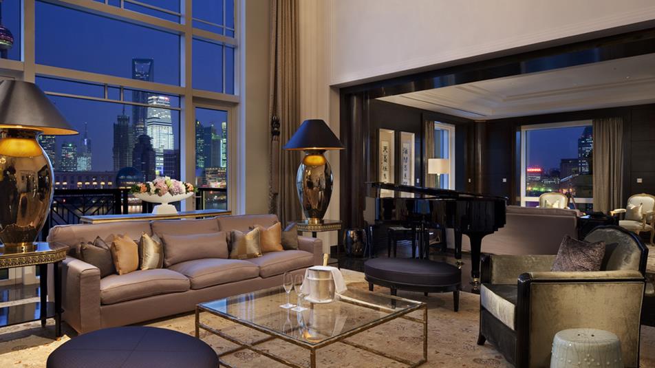 ВеликийПолулюкс (120-129 кв. м): пошиття, вітальня з обідом та робочими зонами, спальня з двоспальним ліжком або двома окремими ліжками, шафа, ванна кімната з ванною та окремою душовою кабіною, гостьова кімната. Додатково: Камінь. Види для саду, зони Bund, річок і небесних зон Пудун.
