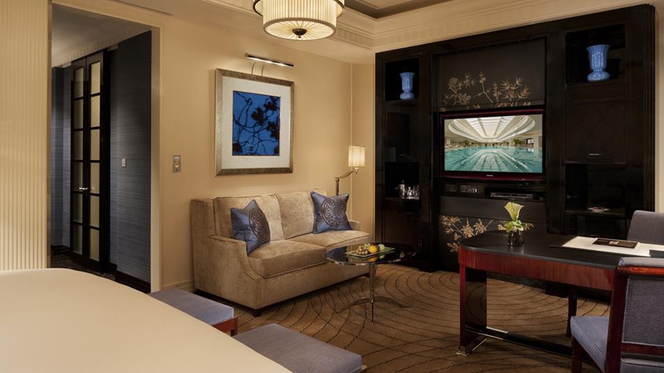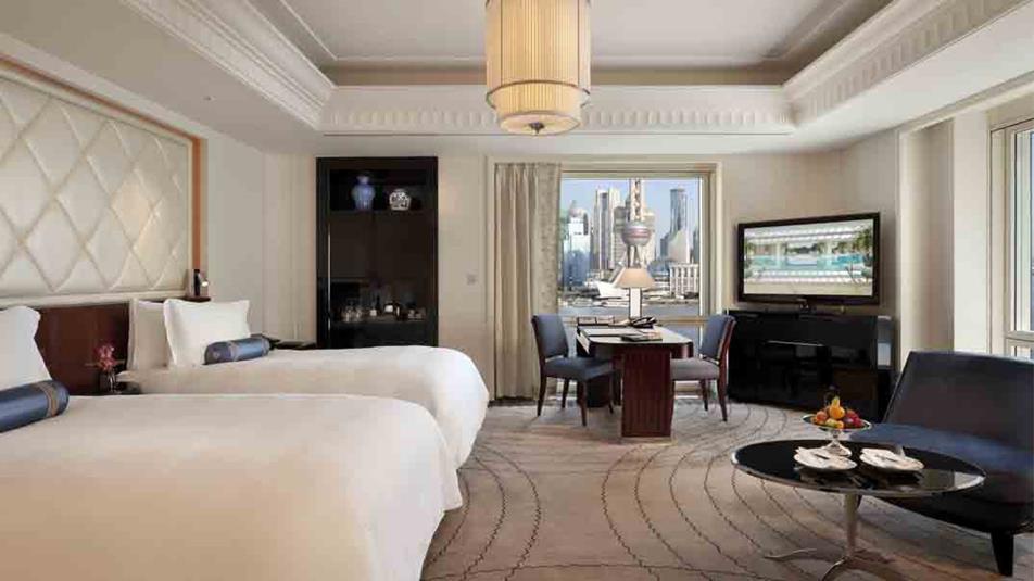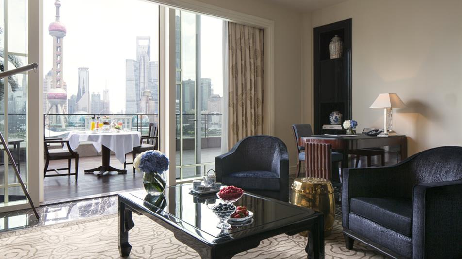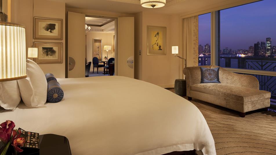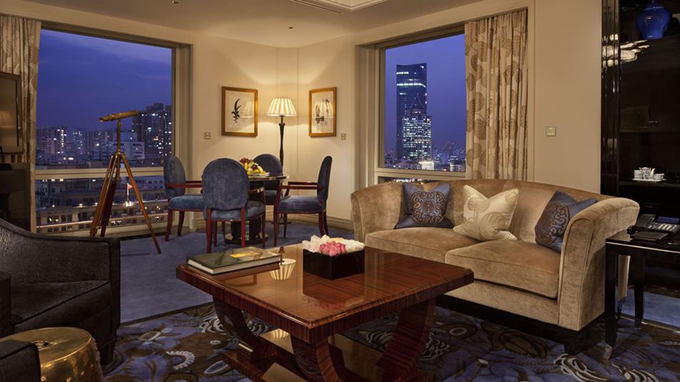 Полулюкс Річковий номер (71-89 кв. м): передня, спальня з вітальною зоною (крім королівського розміру або двома окремими ліжками), санвузол з ванною кімнатою і окремою душовою кабіною. Посаджена в кут будівлі. Види річок і хмарочосів Пудунського району.