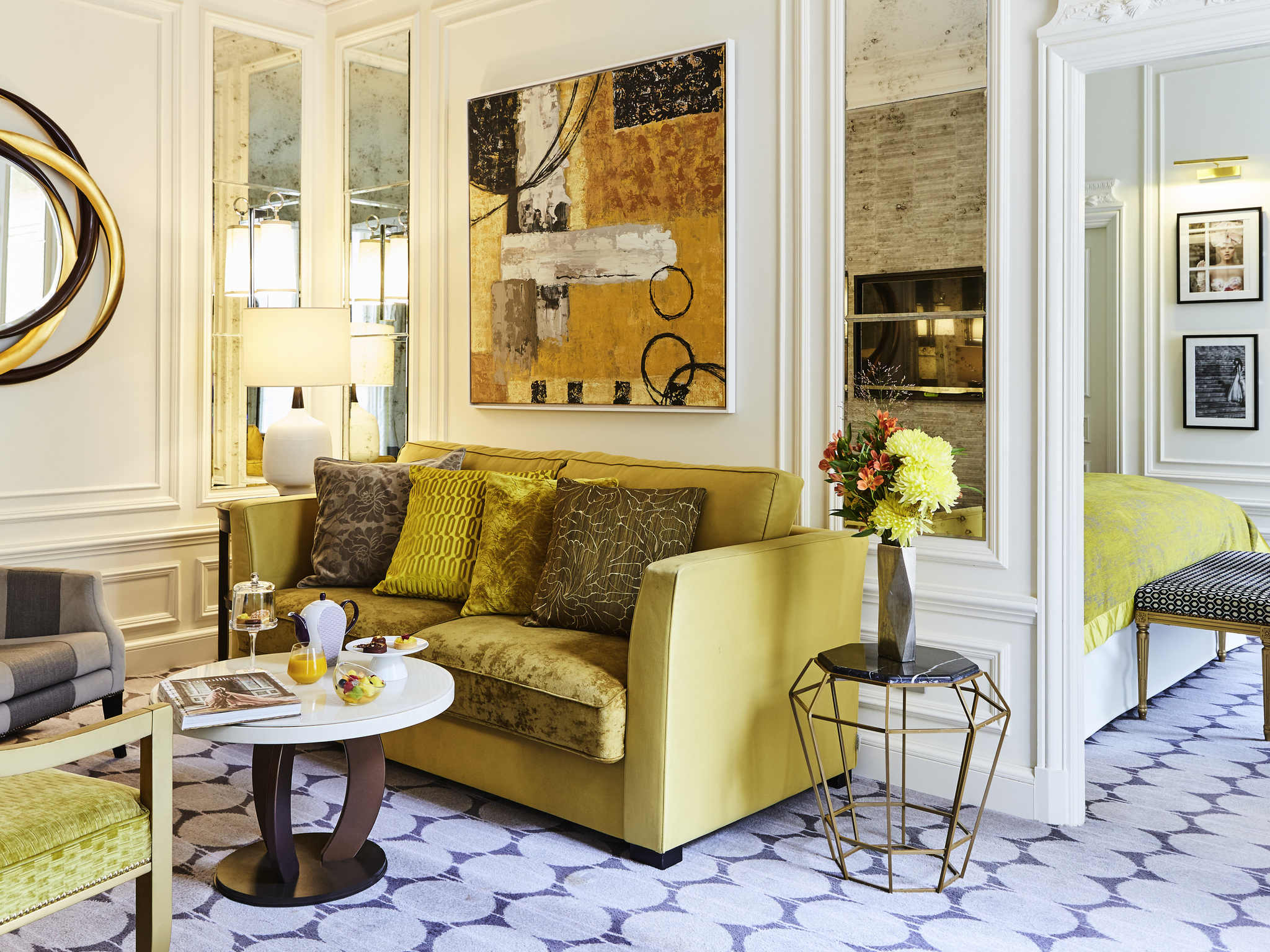 Номери в Sofitel Paris Le Faubourg оформлені в стилі, що увібрав різні епохи. У вишуканому дизайні поєднуються художні ідеї минулого та новітні матеріали. Найдрібніші деталі інтер'єрів, що створюють гармонійний ансамбль, покликані розширити простір номера та зробити його світлішим.