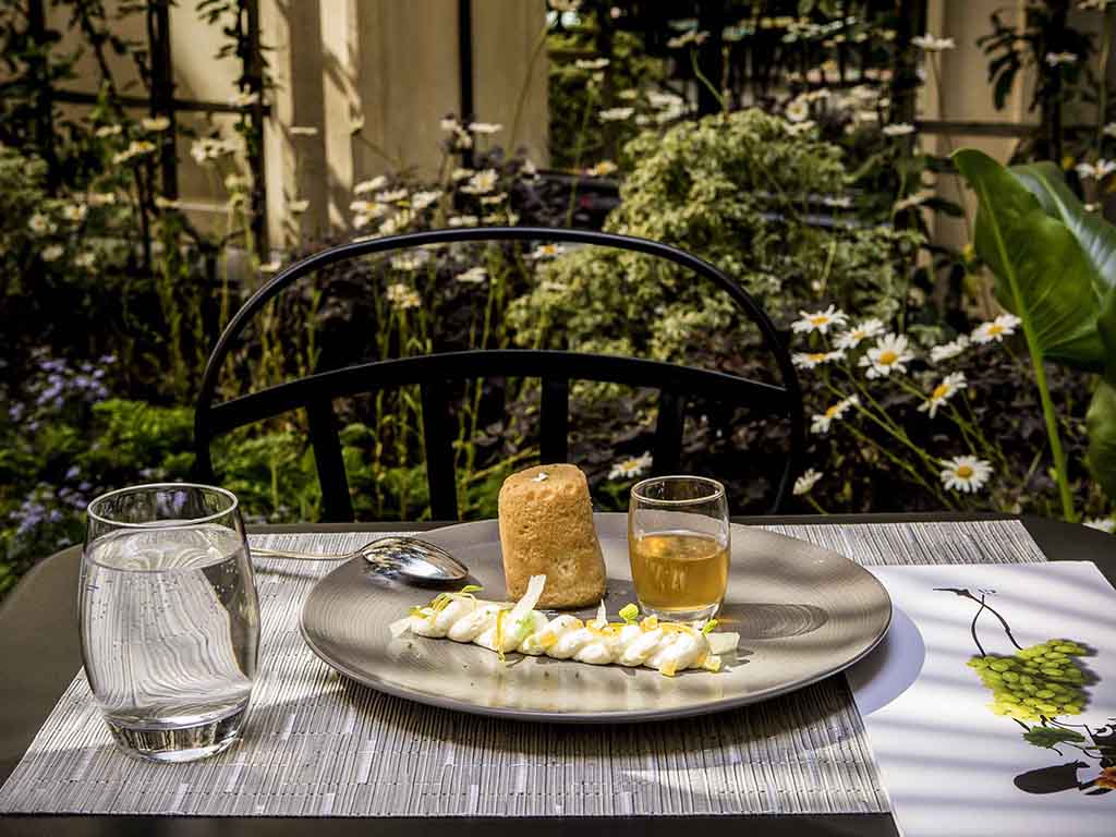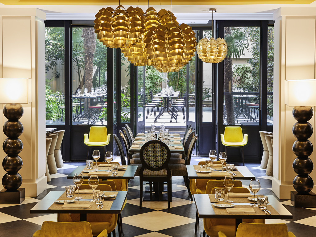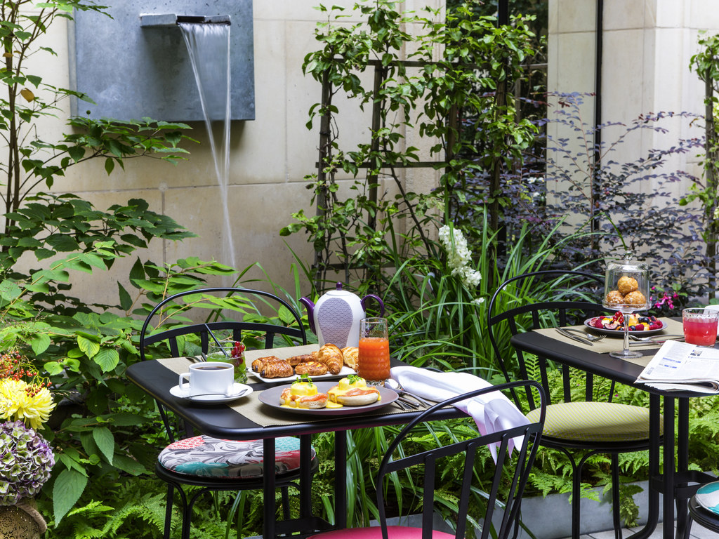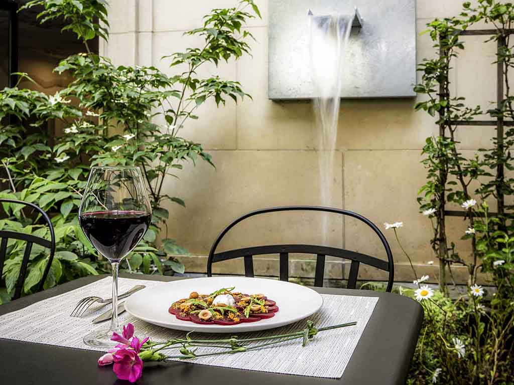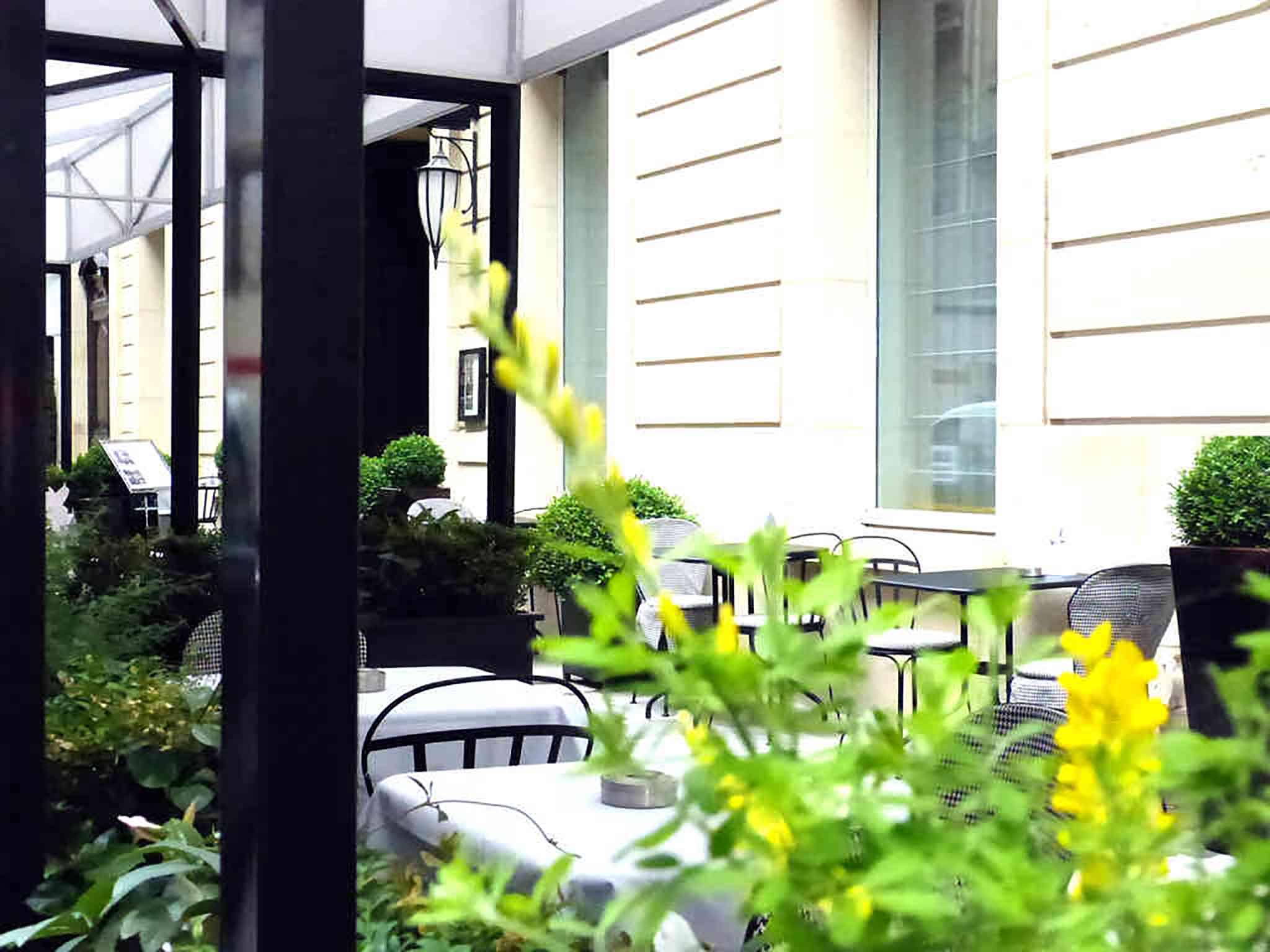 Особливого шарму готелю додає його чудовий ресторан, який давно став одним з улюблених місць для зустрічей парижан. Тут у теплій атмосфері, овіяній тонкою чарівністю французької haute couture, готельний шеф-кухар порадує гостей вишуканими стравами кухні Франції.