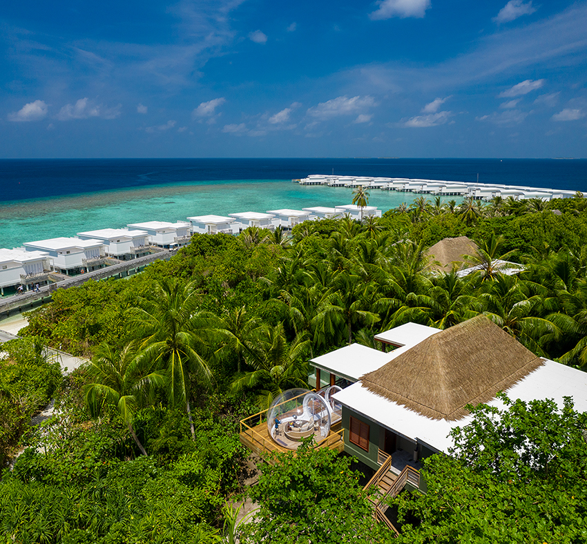 Номер розташований на височині і має чудові краєвиди на курорт, пляж та Індійський океан. Головною родзинкою номера є прозорий міхур діаметром 4 метри, який знаходиться на окремій терасі і обладнаний кушеткою, що обертається, телескопом і звуковою системою Bang & Olufsen. Інша тераса має в своєму розпорядженні дерев'яні підлоги, зону відпочинку і басейн-інфініті. Номер має спальню з ліжком розміру king-size, дві ванні кімнати, вітальню, приватний двір з садом, в якому знаходяться тропічний душ та барбекю. Розміщення: 2 особи.