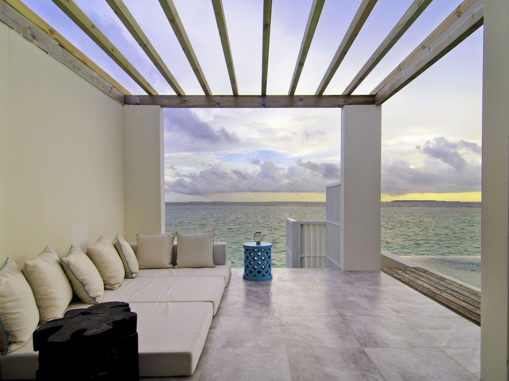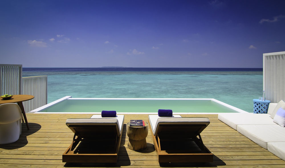 230 кв. м. Прекрасні надводні вілли з видами на океанські простори складаються з окремої спальні з ліжком розміру king-size, затишної вітальні з зоною відпочинку та робочим столом, ванної кімнати відкритого плану з керамічною ванною, душем та раковиною, тропічного душу на просторій сонячній терасі з басейном та зоною відпочинку. Номер має прямий доступ до океану. Розміщення: 2 особи.