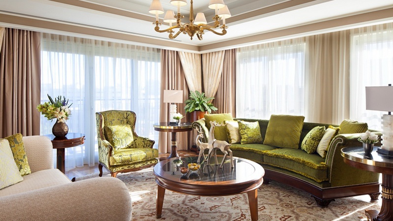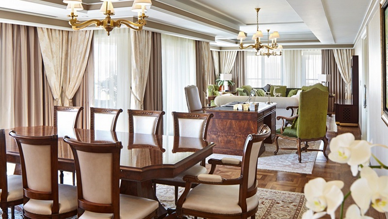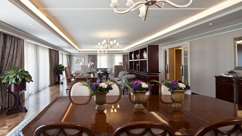 Полулюкс: 150 кв.м. Чудовий елегантний номер розташований на 9 поверсі готелю. З спальні з двоспальним ліжком king-size, harbor, вітальня, симпатична ванна кімната, розсіяний мармур з джакузі, сауною і душовою кабіною, гостьовою кімнатою, балконом.