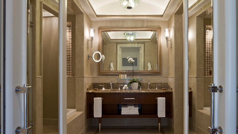 Двомісний номер: 40 кв.м. Елегантний номер в спокійному тону складається з спальні з двома ліжками близнюків, рекреаційних зон і санвузлом, смугастий мармур з ванною і душем.