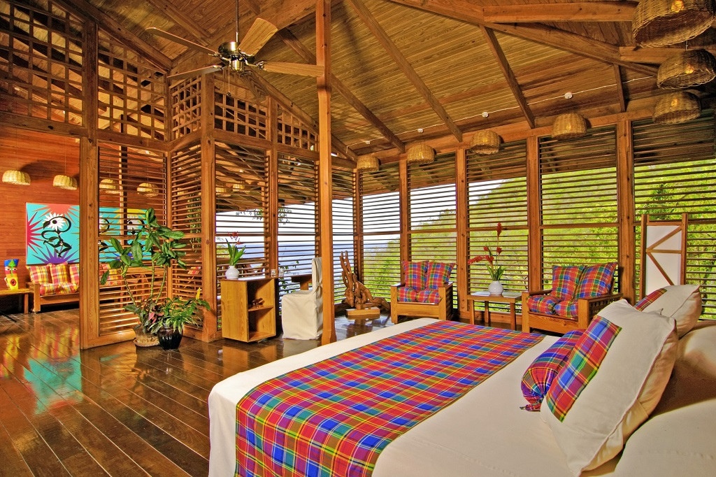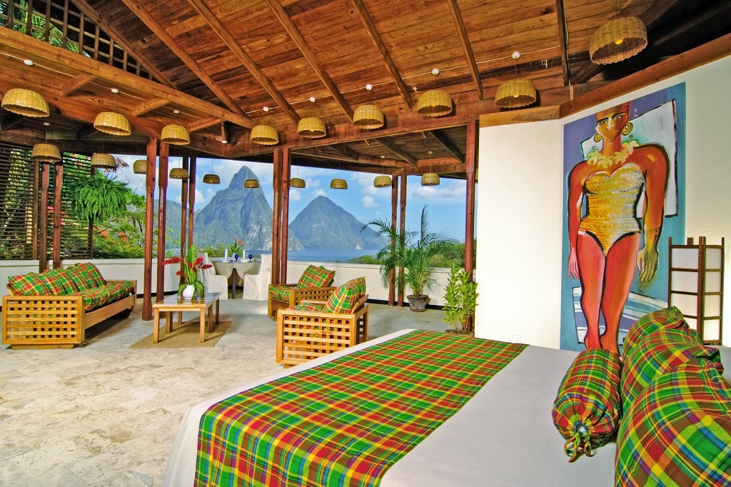 У готелі 49 різних категорій: 37 знаходяться на пагорбі в тропічному піску, а 12 знаходяться в саду біля пляжу, на пагорбі і на пляжному рівні з'єднують сходи від 100 кроків і безкоштовний трансфер. Кількість внутрішніх приміщень – вишуканий смак і оригінальний декор: картини місцевих і зарубіжних художників, подушок і покриті яскравими національними бавовняними тканинами мадра, вирізані з рідкісних видів острівних порід деревини - tic, червоне дерево, червоне ядро і хлібне дерево. Балкони і тераса відкриваються захоплюючі види на Карибському морі, що випливають з води вершини гори Пітон, а густо емальовані тропічні сади.