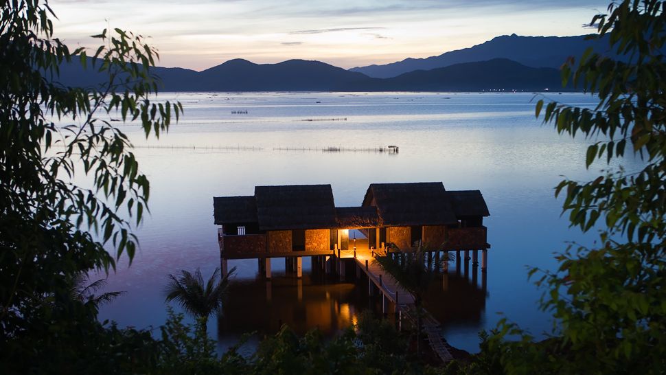 Дзеркала величезних локонів Тху Бона, оточених родючими цибулинами та рисовими полями, біля Національного парку Баха Ма та двох старовинних міст Хайюї та Хоян, висаджували розкішні вілли, бунгало та конгреговані ландшафтні сади Ведана Лагоон Resort " Невидима гостинність, зразковий архітектурний ансамбль, клімат застосувань і миру, Лагоон курортний спа В'єтнам отримав славу одного з найкрасивіших курортів Південно-Східної Азії.