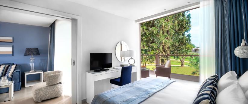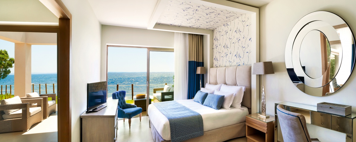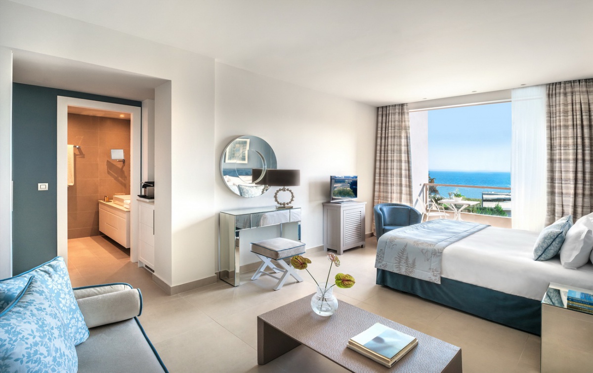 85 кв. Балкон з обідньою зоною на відкритому повітрі (стіл на 4 персони), вітальня з обідньою зоною (стіл на 4 персони), 2 спальні, 2 ванні кімнати (одна – з ванною та душовою кабіною, друга – з душовою кабіною). Номер першої лінії. Гості даних номерів мають спеціальні привілеї в рамках концепції «Делюкс колекція».