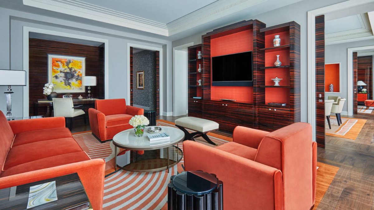 Чотири сезони Виконавчий Люкс: 80 кв.м. Номер складається з спальні з двоспальним ліжком king-size, мармуровою ванною кімнатою з ванною і душем, вітальнею, робочою зоною. Перська затока вид. Максимальне розміщення: 3 дорослих або 2 дорослих і 2 дітей.