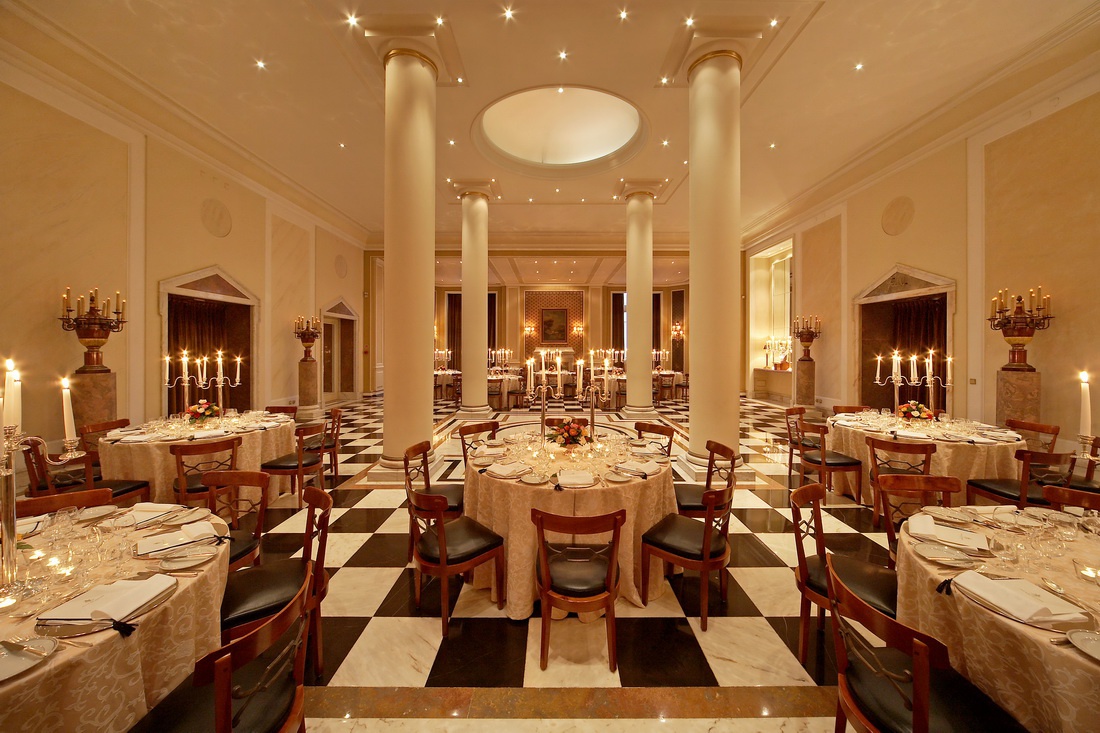 Ресторан Grill Four Seasons пропонує широкий вибір страв італійської кухні. Бар Estoril, відомий як улюблене місце зустрічі мешканців при Другій світовій війні, пропонує затишне оточення та багато напоїв, бар за межами басейну, відкритий в літні місяці, всі можливі напої та легкі закуски. 9 конференц-залів і бенкетів, що входять до складу 10 і 500 осіб, сучасний бізнес-центр – ідеальне місце для бізнес- та комфортних заходів. Палаціо Естеріль перетворює атмосферу варитності, вишуканого комфорту та повторення традицій аристократії старої Європи.