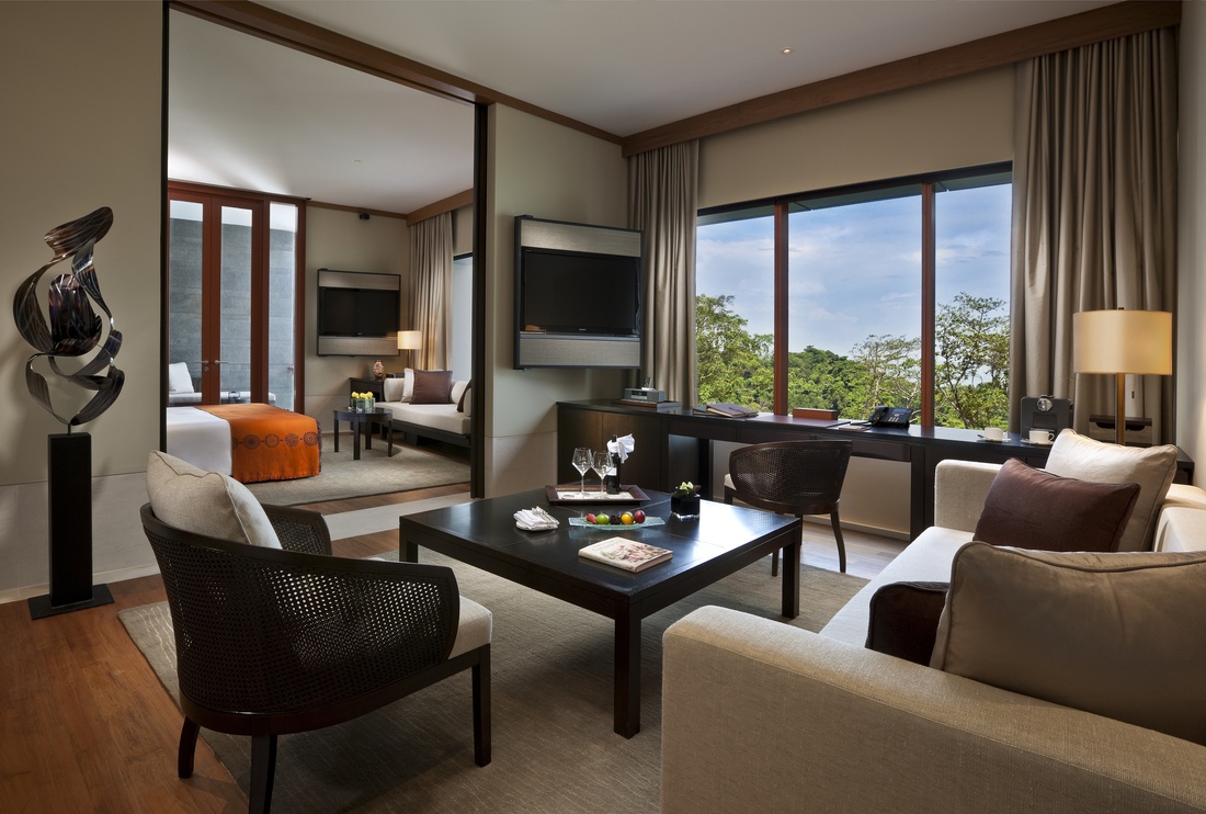 Номер для переговорів: 77 кв.м1 часй З спальні з ліжком kingsize і зоною відпочинку, санвузлом, простою балконом з джакузі і видом на тропічні ліси або на море.
