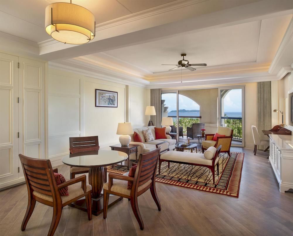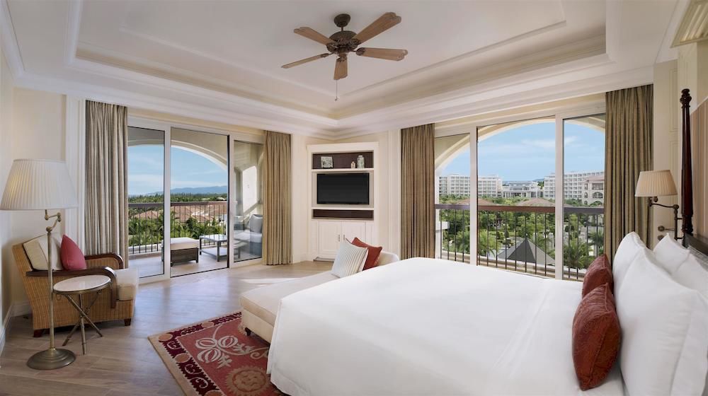 У готелі 160 різних категорій, включаючи Гостьовий номер, Люкс і Вілла. Прості номери з комфортом поєднують елегантні європейські дизайнерські та автентичні китайські елементи декору, а балкони мають прекрасний вид на Південно-Китайське море, басейни та готельні приміщення.