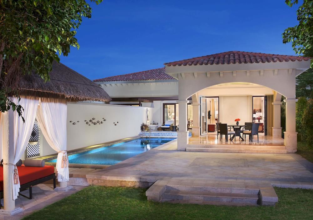 Пляжний вілла: 728 кв.м. Чудова вілла з видом на море, розташована на пляжі, складається з трьох спалень (два з king-size ліжками і одна з двома ліжками близнюки) з санвузлами (основна спальня - ванна кімната з якузі і душовою кабіною і harbor), проста вітальня, 10-особиста їдальня, відкрита ванна кімната з душовою кабіною) Гості можуть скористатися послугами палацу.