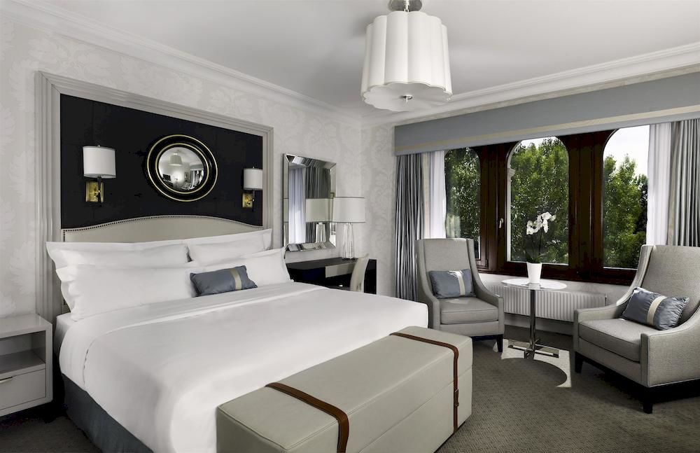 Брістоль Виконавчий номер: 38 - 59 кв.м1 час♪ Номер Брістоль Виконавчий 59 квадратних метрів представлений в двох варіантах: прості і легкі студії або подібні фасцинації з окремою вітальнею. Ці красиві номери зберігаються в недорогому класичному стилі, зразки яких є розкішним ліжком з оригінальним темним заголовком, комфортними кріслами з м'яким покриттям, а також елегантними аксесуарами, такими як кришталеві світильники. У номері є прекрасний вид на історичну королева або елегантний готельний суд. У номері є крута мармурова ванна.
