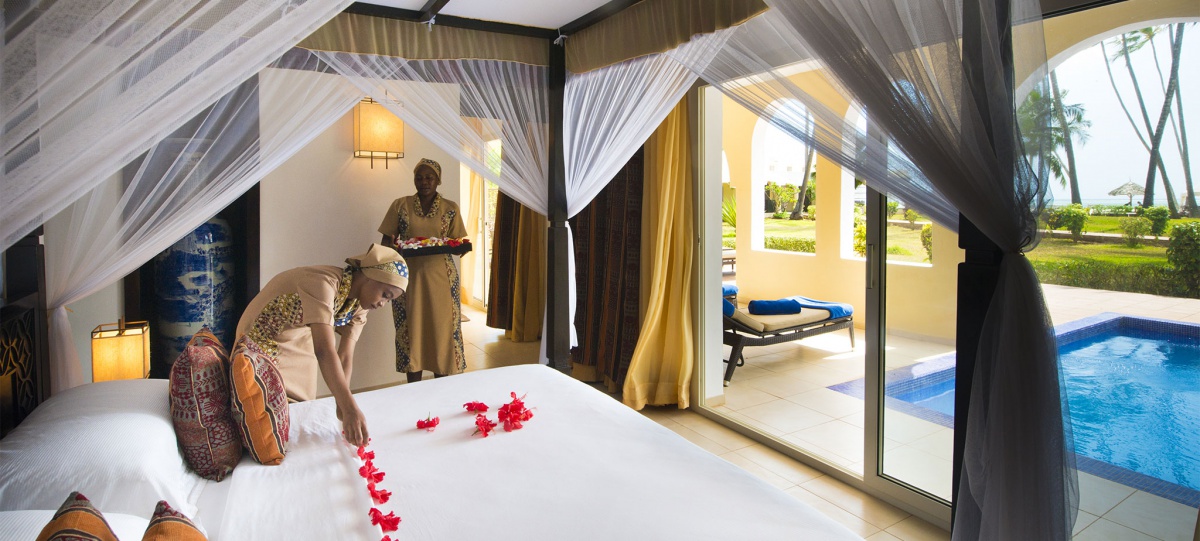 Розташований на пляжі Ківнгва на північно-східному узбережжі Занібара. Об'ємний екзотичний сад знаходиться в с. Пвані Макханані. У дитячому клубі та спа-салоні, де проводяться східні процедури. Готель знаходиться в самому серці. Кожен одномісний номер з простим, власним терасою заповнюється меблями в номері. Крім того, гості мають супутникове телебачення, міні-бар і чай. Ванна кімната з душовою кабіною наповнена безкоштовними туалетно-косметичними засобами.