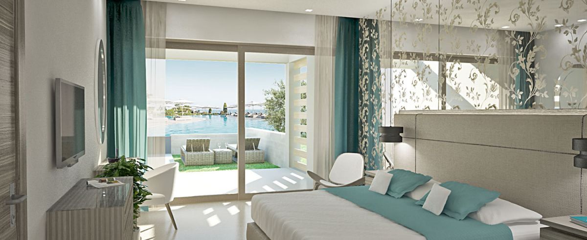 У готелі працює 136 номерів різних категорій (24 номери Junior Suites, 56 номерів Deluxe Junior Suites & Panorama Junior Suites, 56 номерів Double Rooms & Family Rooms) з чудовими видами на Егейське море та мальовничі сади готелю. Інтер'єри витримані у світлих відтінках моря та піску, оточуючи ваш відпочинок спокоєм та затишком. У номерах передбачені всілякі зручності та сервіси, які порадують навіть досвідчених мандрівників.
