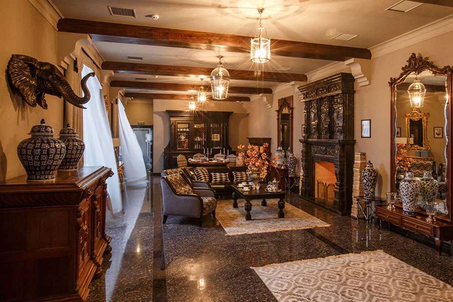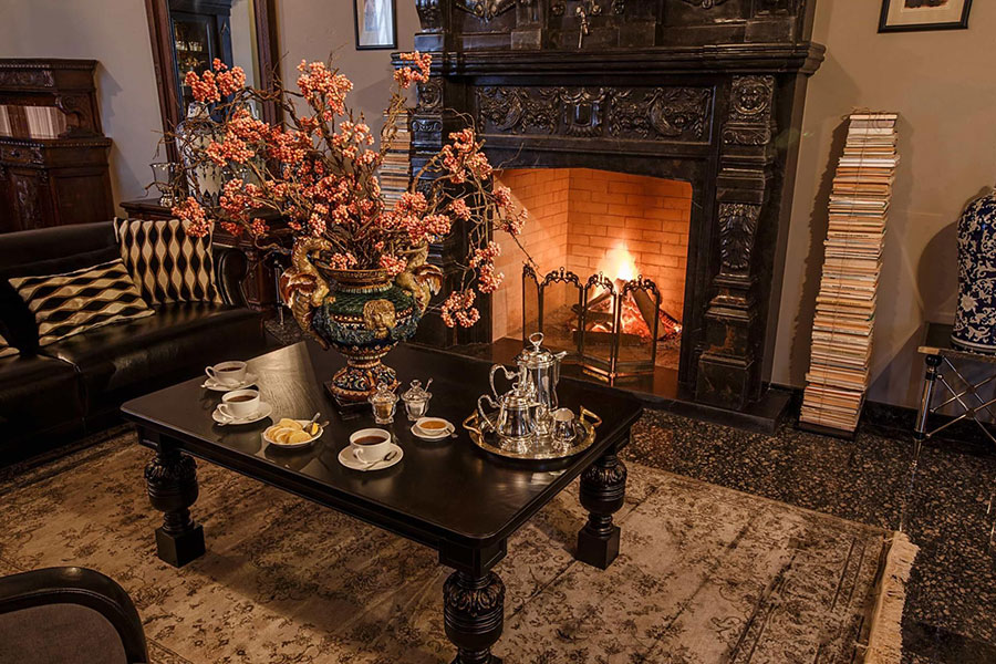 Окремий будинок для сім\'ї або компанії з затишною вітальнею і кам\'яною зоною відпочинку, обіднім столом і бібліотекою.