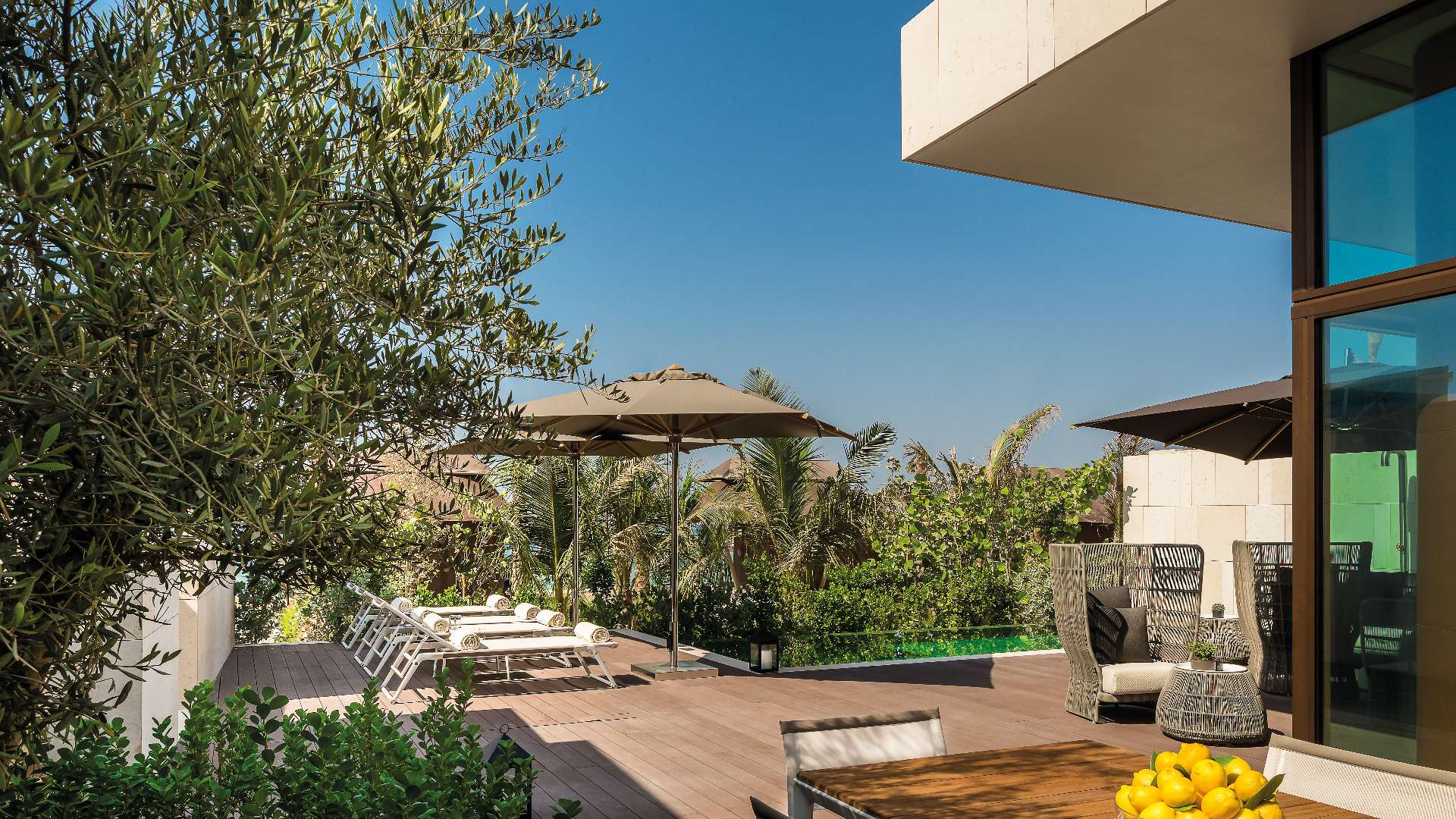 У віллі цієї категорії ви знайдете дві просторі спальні, в одній з яких буде ліжко розміром King size, і два ліжка Queen size в іншій, а також вітальню з панорамним вікном, патіо, де гості можуть розміститися за обідом або вечерею, басейн та терасу. Крім того, у вітальні є робоче місце, а також вілла оснащена повністю обладнаною кухнею, кімнатою для покоївки та вбиральню для гостей.