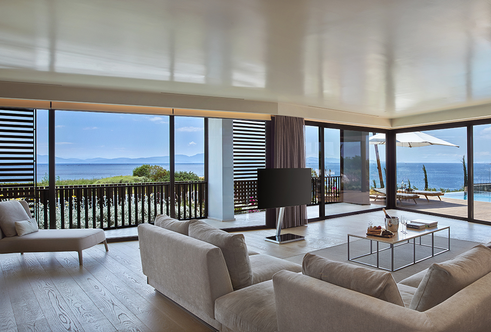 Затишна вілла може мати площу від 41 до 46 м2. Розташовуються відокремлені будиночки цієї категорії на пагорбі далеко від головної будівлі. Сучасний та стильний дизайн виконаний у світлих теплих тонах із використанням якісної деревини. Гості зможуть відпочити на власній просторій терасі та насолодитися мальовничими краєвидами Егейського моря та тінистих садів готелю. Розкішна мармурова ванна кімната обладнана подвійною раковиною та душем.