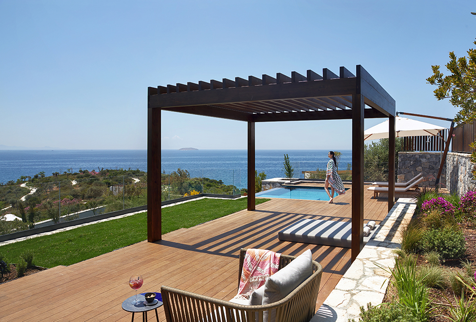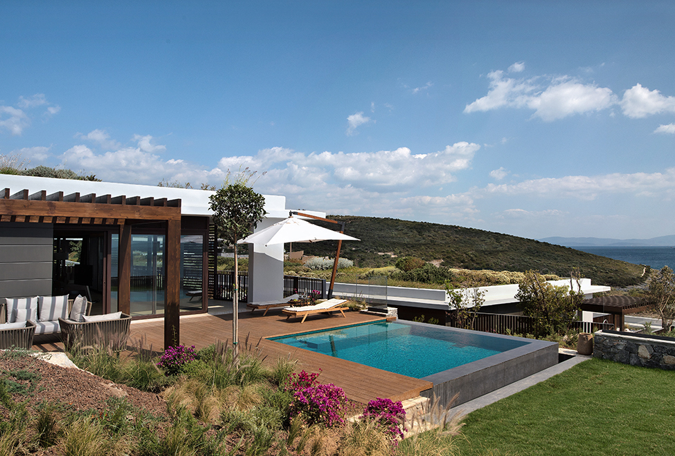Комфортабельна вілла цієї категорії має площу 69 м2 та доповнюється великим басейном площею 12 м2. Простора спальна зона мебльована двоспальним ліжком, а затишна вітальня додатковим диваном, який можна розкласти. Щоб гості могли вдень насолодитися чудовим краєвидом на безкрайнє море або у вечірній час споглядати зоряне небо, їм варто лише піднятися внутрішніми сходами на власну терасу розташовану на даху.