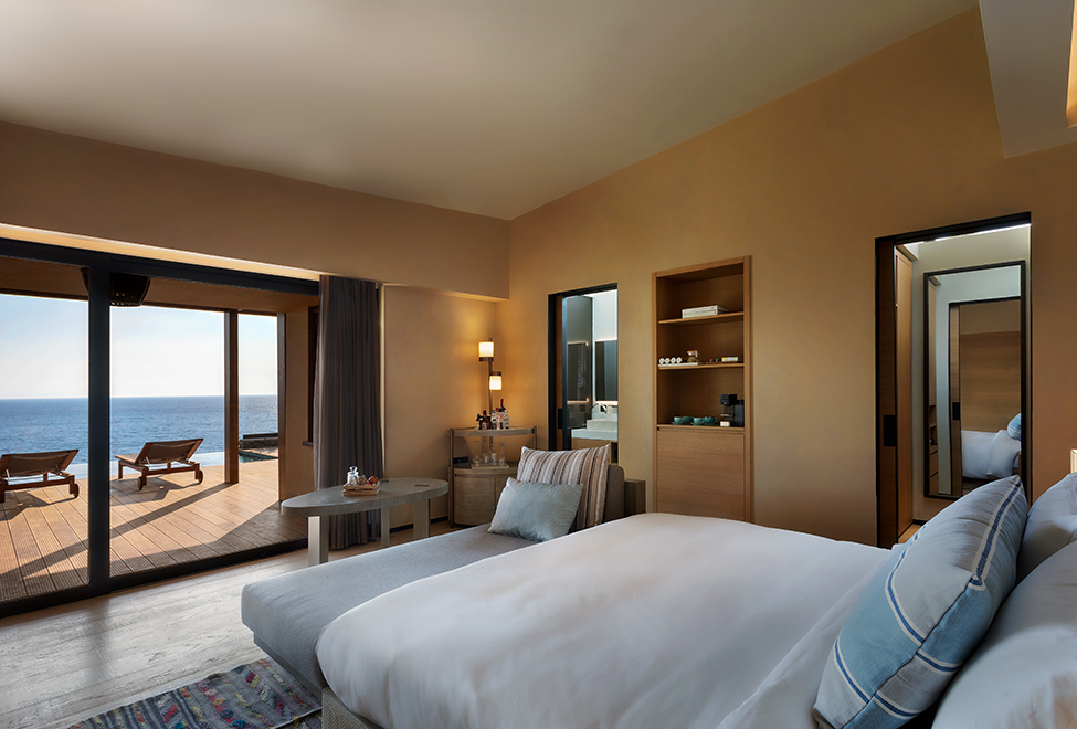 Розкішний люкс, який має площу 105 м2 (плюс басейн 12 м2). У спальні з великими панорамними вікнами гості зможуть відпочити на великому ліжку розміру King-Size, а у вітальні поснідати в затишній обідній зоні зі столом на 4 особи. Зручна вбиральня з великою шафою оздоблена світлим деревом та обладнана міні-баром. Простора тераса виходить до широкого приватного басейну та мебльована комфортними столиками та стільцями.