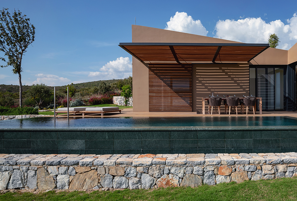 Площа розкішної резиденції може бути від 175 до 185 м2. Інтер'єр виконаний у світлих спокійних тонах з використанням натуральних матеріалів та оригінальних елементів декору. Вілла має в своєму розпорядженні три спальні та прилеглі до них ванні кімнатами, велику вітальню з зоною для розваг і каміном, обідню зону з повністю мебльованою кухнею, терасу з обіднім столом, двома диванами та кріслами. Максимальне розміщення – 6 осіб.