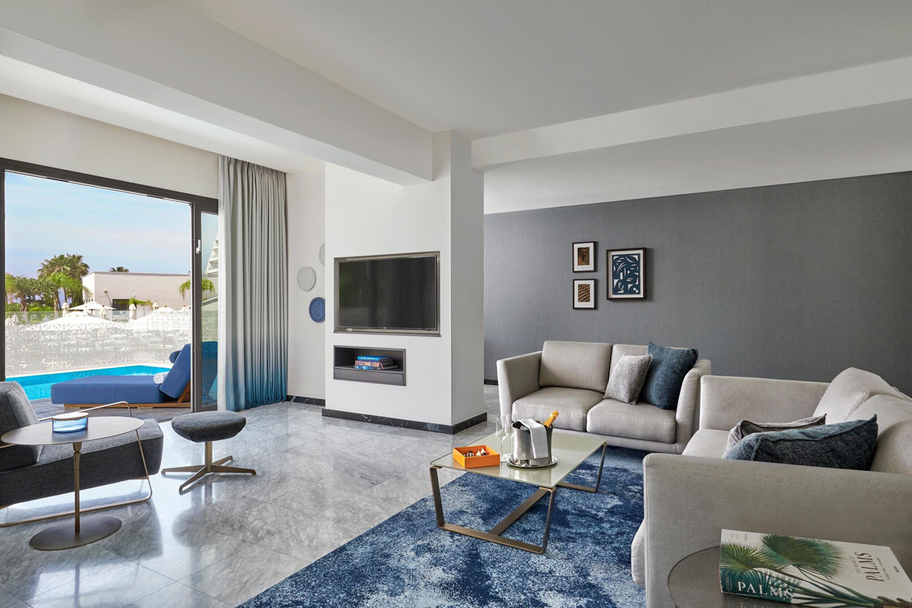 Розташований в ексклюзивному крилі лише для дорослих, цей люкс вміщує до двох гостей і має додаткові переваги басейну, закритої тераси з тикового дерева та місця для відпочинку. Люкс площею 115 м2 оснащений фірмовим ліжком розміру "king-size" Luxury Collection, вітальнею з диваном, обідньою зоною та терасою з видом на море. Інтер’єри сучасні, традиційні кіпрські візерунки з сучасним відтінком. Вишуканий і витончений дизайн, кожен люкс пропонує тихий відпочинок з найсучаснішими технологіями, великим телевізором і входом без ключа. Оздоблена мармуром окрема ванна кімната включає окремо стоячу овальну ванну, окрему душову кабіну, тропічний душ і розкішні туалетно-косметичні засоби.
