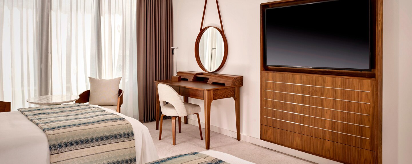 42 м. Стильний інтер’єр має приглушену кольорову палітру та тонкі акценти лефкарітичних мотивів на стінах та підлозі. У номерах є ліжко розміру "king-size" або 2 односпальні ліжка, м'яке крісло, туалетний столик подвійного призначення та письмовий стіл. У кількох номерах є двоспальні дивани-ліжка, які акуратно розкладаються, а інші суміжні з покращеними номерами Твін для великих груп. Насолоджуйтеся найсучаснішими технологіями та окремою ванною кімнатою з тропічним душем, розділеним туалетом для усамітнення та розкішними зручностями.