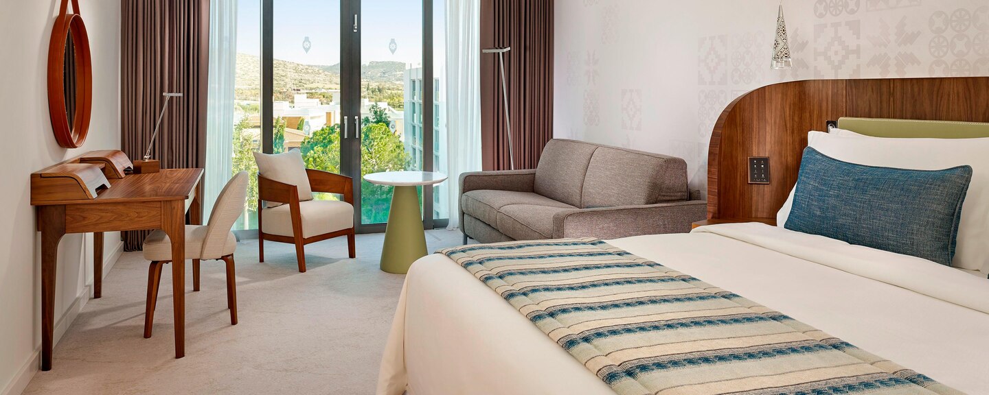 Площа покращених номерів становить 42 метри, в них можуть розміститися до двох дорослих і двох дітей або трьох дорослих. Елегантна палітра кольорів, оздоблення зі світлого дерева на фурнітурі та тонкі акценти мотивів Lefkaritika на стінах і підлозі. У кожному номері є двоспальне ліжко King або Twin, зручне крісло, туалетний столик подвійного призначення та письмовий стіл. У деяких номерах є двоспальні дивани-ліжка для додаткової зручності, а інші суміжні з покращеними номерами Твін. Насолоджуйтеся найсучаснішими технологіями та окремою ванною кімнатою з тропічним душем, розділеним туалетом для усамітнення та розкішними зручностями.
